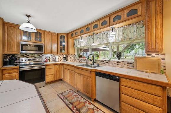 Multiple homes on property! Nestled on 6.87 acres of beautiful land, this exceptional multi-home property is a true dream! The beautifully maintained main home, 1352 sq ft, features 2 beds, 2 baths, & a spacious open-concept living area that seamlessly connects to the kitchen--perfect for hosting gatherings. The primary suite boasts an ensuite bath with a charming clawfoot bathtub & a beautifully tiled separate shower. Covered porch, garage & attached carport for plenty of covered parking, charming character & warm home feel. Metal roof is just 2 years old! The entire 6.87 acres is fenced. Plenty of room to run, play, garden, this land could meet a wide variety of needs! Above ground pool with decking & covered area to relax & enjoy. Large horse barn has 10 stalls with birthing stalls and tack room, tons of storage space! This could be a great location for a breeding facility with homes on property for workers.