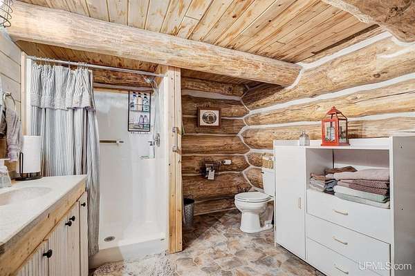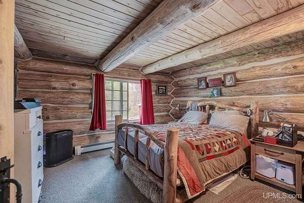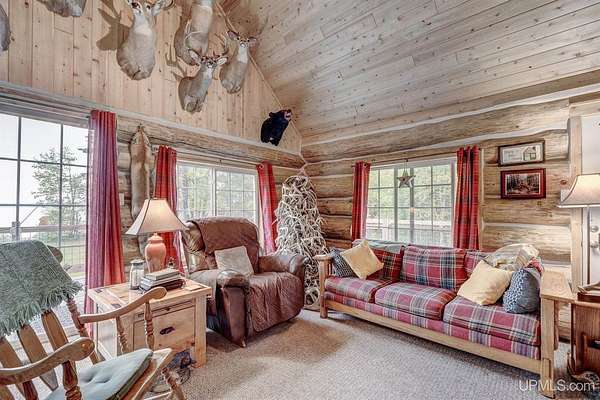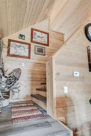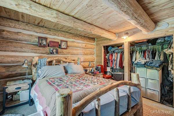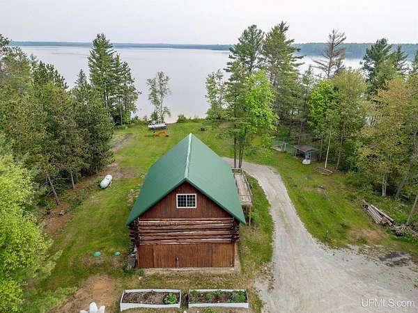 Rustic Elegance Meets Lakeside Living - Full Log Cabin on Moss Lake Discover the charm of this custom-built full log cabin, crafted in 2019 using hand-selected logs from the very land it stands on. Nestled on a picturesque lot with over 1,000 feet of private frontage on beautiful Moss Lake, this one-of-a-kind property offers peaceful water views, a sand-bottom shoreline, and prime swimming and fishing right outside your door. Step inside to find an inviting open-concept layout, highlighted by warm wood tones and a cozy loft perfect for relaxing or additional sleeping space. The walk-out basement includes a newly added non-conforming bedroom, a private sauna, and ample room to finish for more living space. Outside, a wraparound deck offers stunning panoramic views of the lake. A brand-new 30'x54' pole barn with electricity provides plenty of room for storage. The property also features a permanent water filtration system and over 25 newly planted fruit trees for your very own orchard. Whether you're looking for a year-round residence, vacation home, or family retreat, this lakefront log cabin offers unmatched beauty, comfort, and potential. Don't miss this rare opportunity to own a slice of Northern paradise!