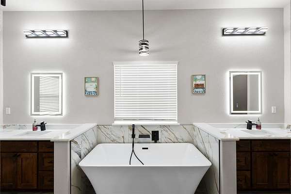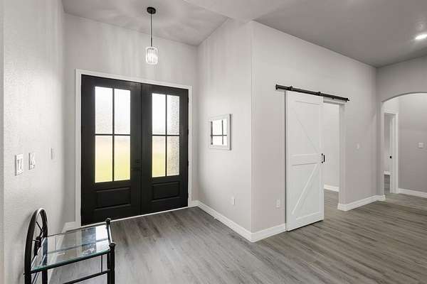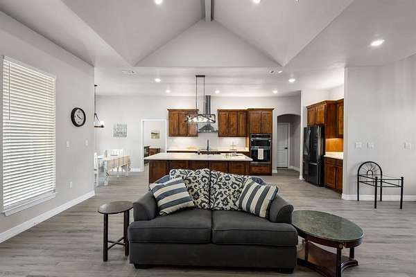 Thoughtful extras include a tankless water heater, whole-home generator hookup, and a discreet hidden safe room. The oversized two-car garage offers room for vehicles and storage.