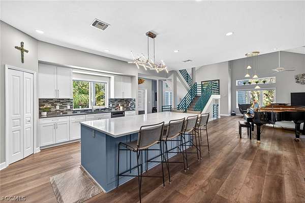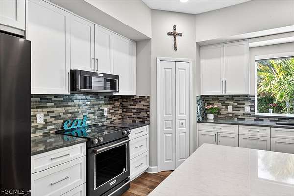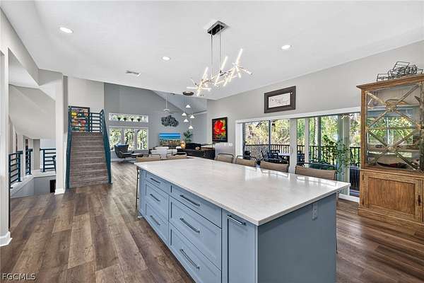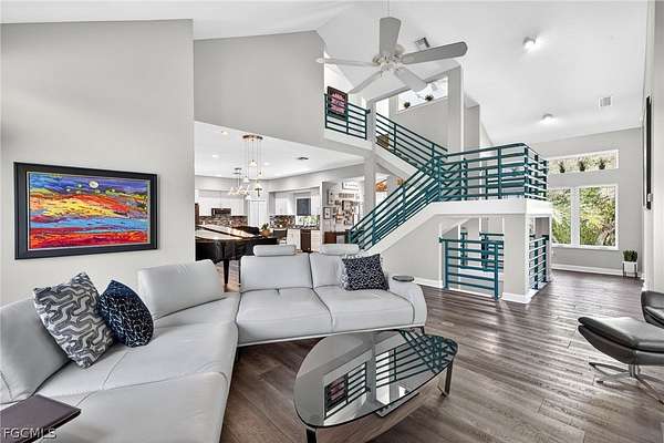 Tucked away at the end of a picturesque tree-lined driveway, this GORGEOUS custom built estate offers a rare opportunity to own a private slice of Old Florida paradise. Perfectly positioned on 2.5 acres along the Orange River, this one-of-a-kind property is surrounded by lush tropical gardens, mature landscaping, and peaceful natural beauty. Enjoy an incredible lifestyle with the ability to kayak, paddleboard, or boat directly from your own backyard, taking in the sights and sounds of nature at its finest. This immaculate residence has been extensively updated and features a spacious open floor plan with soaring cathedral ceilings, abundant natural light, and stunning views of the river and gardens throughout. Recent improvements include a BRAND NEW METAL ROOF, IMPACT WINDOWS AND DOORS, fresh paint inside and out, new luxury plank flooring, and beautifully remodeled kitchen and bathrooms. The heart of the home is the stunning updated kitchen, offering modern finishes, generous cabinetry, and an oversized island-perfect for gathering with family and friends. The kitchen flows seamlessly into the main living and dining areas, creating an ideal space for entertaining. With 3 bedrooms and 3 full bathrooms, plus a LARGE BONUS FLEX ROOM, this home provides exceptional versatility for a home office, media room, gym, or additional guest space. Step outside to the expansive screened-in balcony off the great room, where you can relax, dine, or entertain while overlooking the peaceful riverfront setting. The primary suite is a private retreat, featuring its own exclusive balcony with breathtaking river views, a spacious walk-in closet, and a spa-inspired bathroom with dual vanities, a jetted soaking tub, and a separate walk-in shower. Guests will feel right at home in the private suite with its own full bath, while car enthusiasts and hobbyists will appreciate the oversized garages, separate utility entrance, and workshop area. Stroll through the botanical-style gardens, listen to the birds, and experience the tranquility of waterfront living while still being conveniently located near I-75, shopping, dining, schools, parks, and more. This is a rare riverfront estate that must be seen to be fully appreciated. Schedule your private showing today.