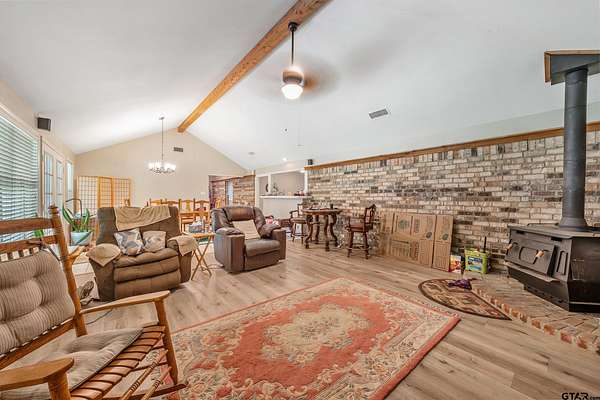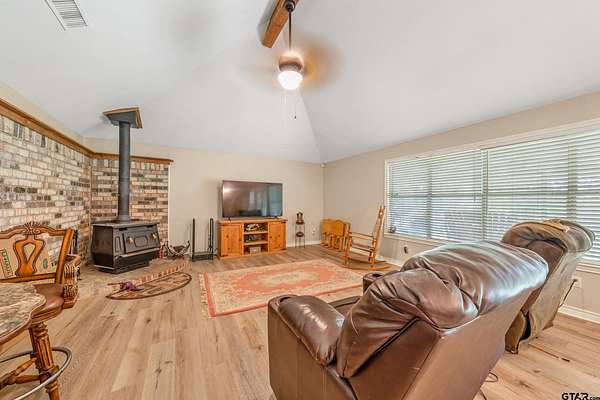 Enjoy peaceful country living on just under 10 acres with this well-maintained 3-bedroom, 2-bath home located in the Winona ISD. With some thoughtful updates and charm, this property offers a comfortable open layout with vaulted ceilings, a wood-burning stove, and beautiful views of pastureland, a spring-fed pond, and a creek. The spacious den and dining area flow together, perfect for gatherings, while the large laundry room adds everyday convenience. Recent upgrades include a new roof (2020), HVAC system (2021), Generac generator (2022), dishwasher and range (2023), and a brand-new walk-in shower and complete replumb with transferable warranty in 2024. Additional updates include new living room flooring (2023), den flooring and water heater (2018), and a freshly cleaned chimney (2025). Relax on the expansive front and back porches, enjoy the barn and storage building, or take in the serene setting just 30 minutes from Tyler. A 2-car garage and 2-car carport provide ample parking and storage. This property offers the ideal blend of privacy, functionality, and timeless country appeal. Come See! Come Buy!