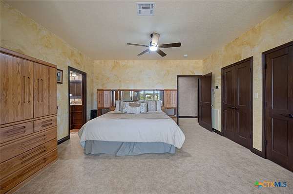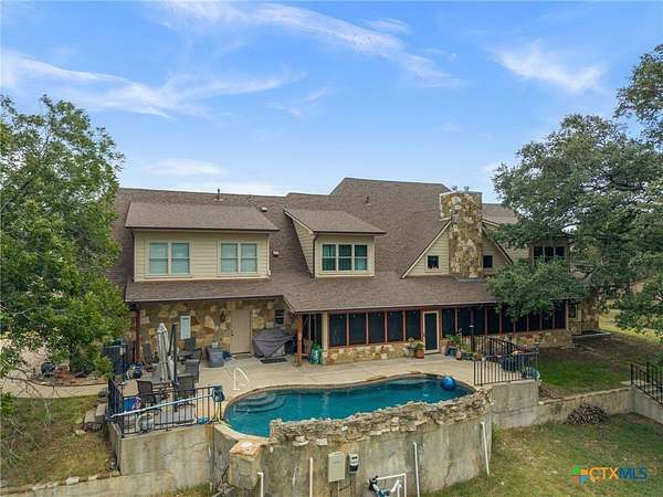Experience lakefront living at its finest in this stunning custom-built Larry Lilly home offering ~5,000 square feet on over 1.9 acres along a deep, protected cove of Lake Belton. Backing to Corps of Engineers land, the property enjoys a natural privacy buffer with direct lake access and beautiful lake and sunset views.Inside, soaring 25-foot ceilings and a dramatic stone fireplace featuring authentic ammonite fossils create a striking first impression. A private office sits off the entry, while a main-level bedroom offers flexibility for guests or multi-generational living.The chef's kitchen is built for entertaining with three sinks (including copper prep), two dishwashers, double ovens, a six-burner gas range, an impressive 6x10 island, granite countertops, abundant cabinetry, and a walk-in butler's pantry.The primary suite is located on the main level and includes a secure safe room within the closet and heated bathroom floors. The luxurious bath features dual vanities, soaking tub, and separate shower.Upstairs you'll find a spacious loft, two exceptional bedroom suites, and an enormous media room with kitchenette. Media seating and TV convey.Outdoor living shines with a screened-in porch, sparkling in-ground pool, three-car garage, and a full-size insulated workshop with electricity. A recently updated one-bedroom guest cottage provides private accommodations for visitors.Enjoy kayaking, lakeside sunsets, and year-round outdoor living in this extraordinary Lake Belton retreat. This is more than a home-it's a lifestyle.