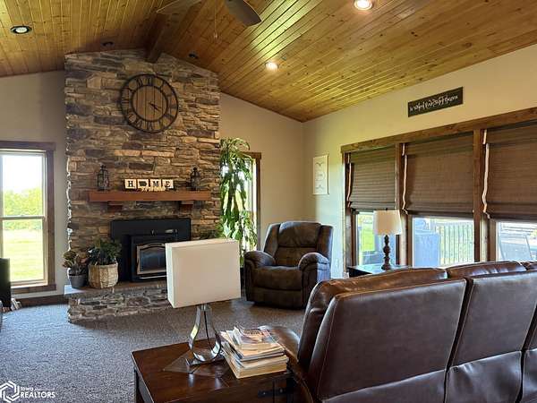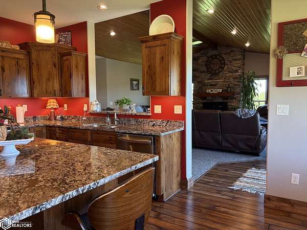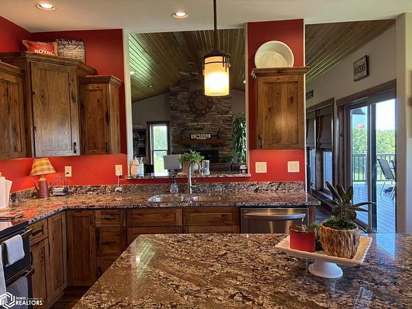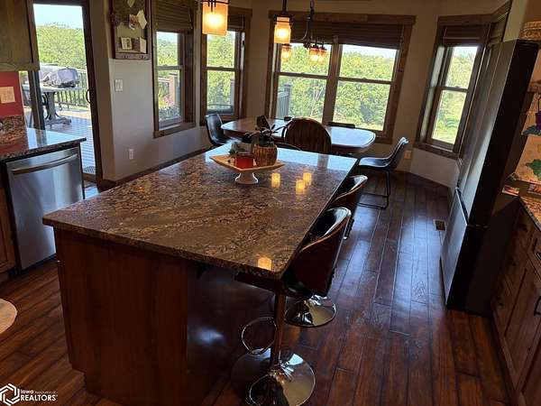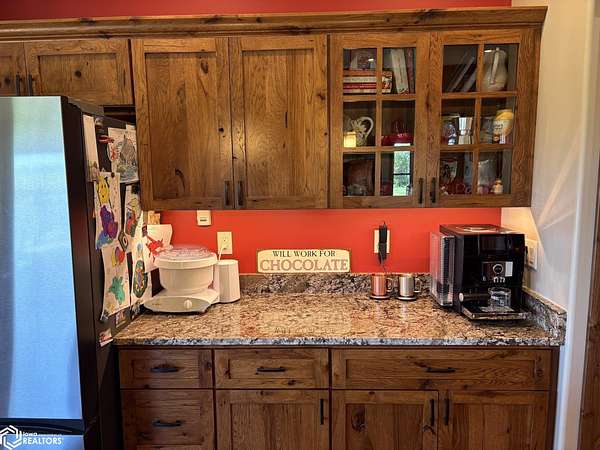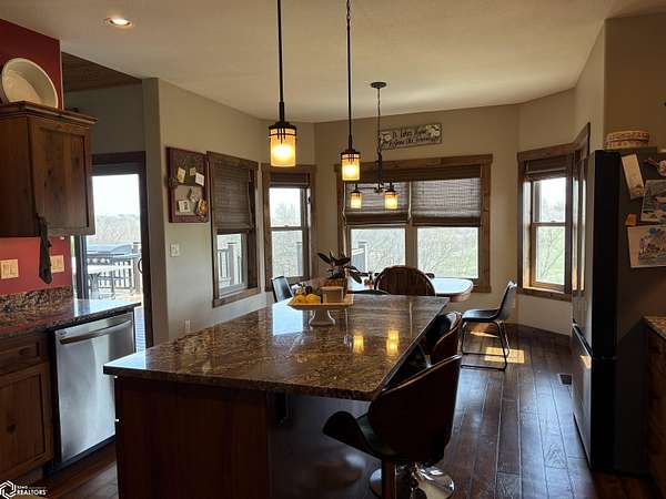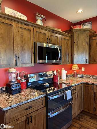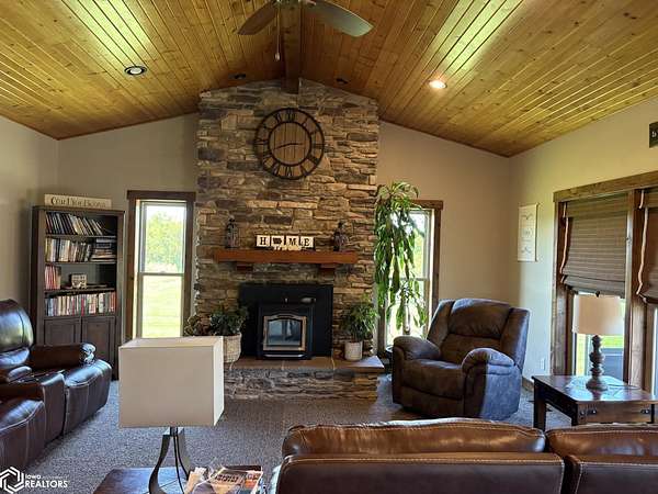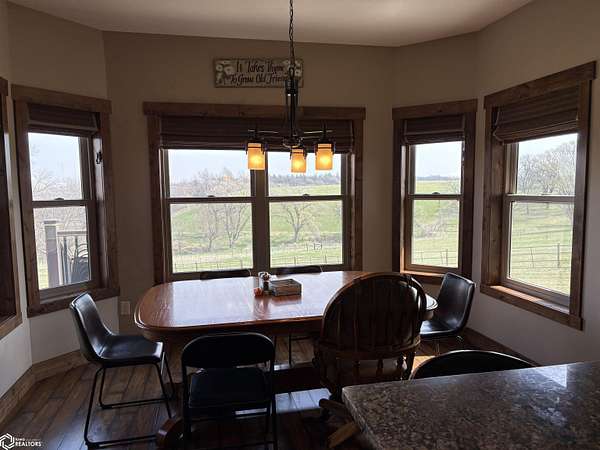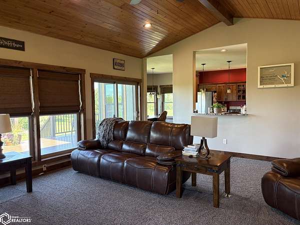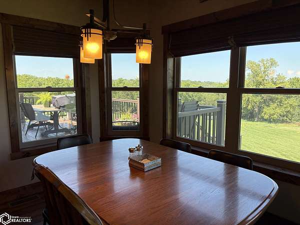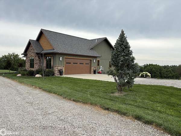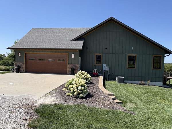 1405 Bluegrass Road Red Oak built in 2016 by the current owners, has all the bells and whistles!! The home was placed on 10.43 acres within the city limits. The property has 2,286 square feet of living area on the main level with 1600 square feet of living area in the lower level and a walk out. The main level has Rustic Knotty Alder woodworking and doors throughout, formal dining room, open kitchen to kitchen dining area, family room with fireplace with sliders to the back deck, a laundry room with a drop zone area just off of the garage. There are three bedrooms, including a master bedroom with ensuite bath and large walk-in shower. Attached is a 709 square foot garage with electric car hook-up. The house has a Generac generator, separate 40X60 utility building with 220, 14' overhead doors, completely spray foam insulation, stubbed for bathroom, and two extra 12X30 bonus lean-to's for extra storage. Its hard to get a newer built home with 2,744 square feet of living area, a walk-out lower level, an attached 709 Sq. Ft. heated garage AND 2,400 Sq. Ft. of shop area on 10.43 acres! Great opportunity to have a recently built home, city water and every electrical advantage possible!!
