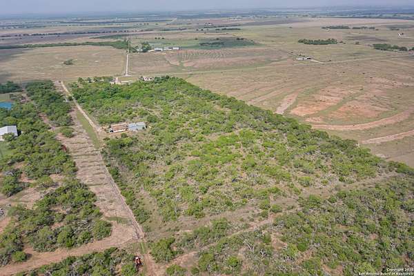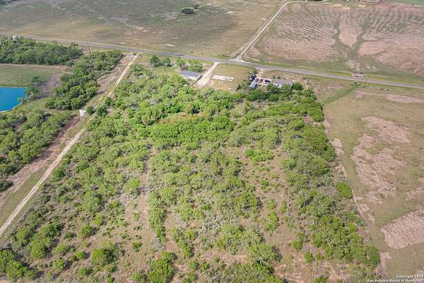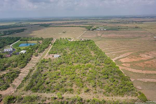 Welcome to 1405 FM 478, located in the heart of the Texas countryside, between Pleasanton and Floresville. This parcel is just under 16 acres of mostly untouched land, off Highway 97, with no city tax and the potential to add multiple homes. This lot includes a 1,680 sq. ft. home with 3 bedrooms, each including ceiling fans and walk-in closets, and 2 full bathrooms. Walking into the house, you are immediately greeted by an abundance of natural light from the windows that line both, the front and back of the home. The living-room is complemented with high ceilings and built-in entertainment center. In the kitchen, you will notice a breakfast bar, recess lighting and several cabinets for storage. Off the living-room is a utility room, which allows backyard access with plenty of room for full sized washer and dryer combo. The secondary bedrooms are located on the left side of the house while the master en suite is on the right, to allow additional privacy. The master suite is complete with a separate tub and walk-in shower combo, double vanity and additional closet space. When you venture outside, you are greeted by a beautiful mix of native trees and plants. Though most of the acreage is not cleared, there are some open areas, a small shed and a 20 x 30 pond. This property is convenient located a mile off Highway 97 and only 8 miles to Interstate Highway 37, making an easy commute to San Antonio, Corpus Christi, and the Valley. Schedule your private tour today!
