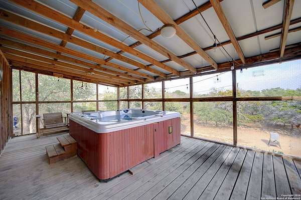 Set on 14.28 acres in the Texas Hill Country, 1405 Forest View Drive offers space, privacy, and flexibility just outside downtown Blanco. The 2,270 sq ft residence includes 3 bedrooms and 2 full and 2 half bathrooms, with a functional layout. The property features a screw down metal roof, a covered outdoor patio, 3-car garage, barn, and separate storage building, providing ample room for equipment, hobbies, and outdoor use. Mature legacy oak trees frame the landscape and surrounding Hill Country views. Interior details include solid oak flooring in the main living areas, a wood-burning fireplace in the family room, and a kitchen equipped with toe-kick soft-close drawers and a walk-in pantry with custom spice rack. A second living area offers flexible use for office, guest space, or recreation. The upper-level deck with hot tub overlooks the acreage and natural surroundings. Utilities include private well water from the Glen Rose Aquifer, water softener, and septic system. The property has no restrictions, offering a wide range of use possibilities. Conveniently located near Blanco's Historic Square, dining and coffee options, Real Ale Brewing Company, and outdoor recreation at Blanco State Park, with easy access to US-281.