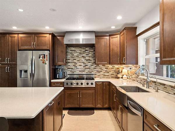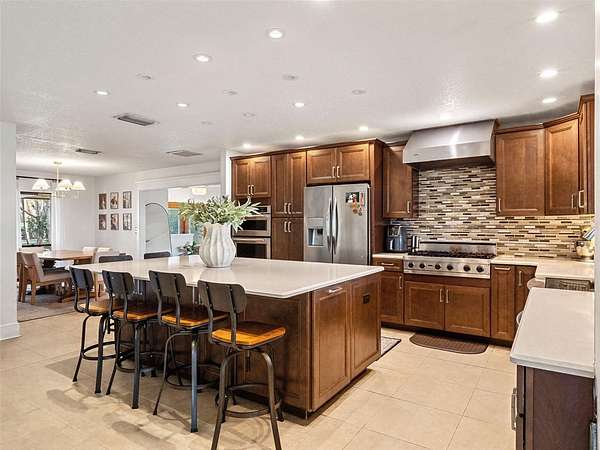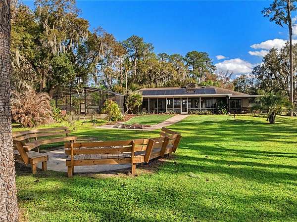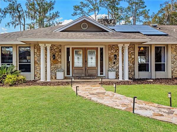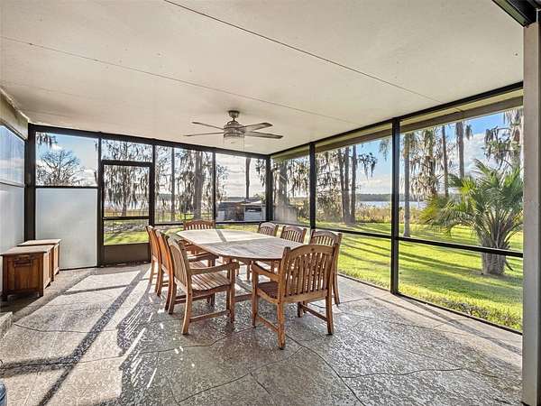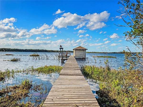 Welcome to 14051 Marine Ct – a breathtaking lakefront estate pool home in the highly desirable Lake Nona area. Set on 1.5+ acres of uplands with over 285 feet of pristine lake frontage, this exceptional 4-bedroom, 2-bath residence offers panoramic sunset views, unmatched privacy, and a level of space and tranquility that is rarely available in the Lake Nona area. Upon entering, you are welcomed by a spacious living room highlighted by a custom floor-to-ceiling rock fireplace and stunning views of the lake beyond. The home flows seamlessly into the open-concept kitchen, great room, and dining area, where large sliding glass doors lead to the covered lanai, summer kitchen, and screened pool—creating the perfect setting for effortless indoor-outdoor living and entertaining. The chef-inspired kitchen is beautifully appointed with quartz countertops, custom cabinetry, a Viking gas range, and an oversized island, making it ideal for hosting family and guests. The expansive primary suite serves as a private retreat, featuring dual walk-in closets and a well-appointed en-suite bath with dual vanities and a walk-in shower. Three additional generously sized bedrooms and a recently updated secondary bathroom complete the interior of the home. Step outside to your private lakefront oasis, where a 12’ x 25’ covered lanai, summer kitchen, and large screened-in pool overlook the expansive backyard and tranquil waterfront. The property also features a private dock and a custom 15’ x 15’ fire pit area, creating the ultimate setting for enjoying evenings by the lake, boating, fishing, and gathering with family and friends. A newer Solar System provides minimal utility expenses as well. Ideally located just minutes from Lake Nona Medical City, Lake Nona Town Center, top-rated dining, shopping, and major highways, this property offers the rare opportunity to experience secluded lakefront living without sacrificing convenience. Don’t miss this incredible opportunity—schedule your private tour today and be sure to view the stunning virtual tour video!