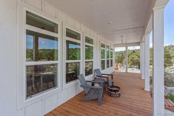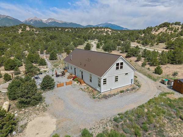 Set on 45.61 acres just minutes from downtown Salida, this custom modular home offers privacy, infrastructure, and usable land that is increasingly hard to find. Built in 2018, the 1,860 square foot residence features 3 bedrooms and 2 bathrooms on the main level, plus a fully framed and insulated upper level designed for a future living area, bedroom, and bathroom, offering excellent expansion potential. Inside, expansive windows fill the home with natural light and showcase surrounding views. The open layout connects the living room, dining area, and kitchen, anchored by a gas fireplace. The kitchen features stainless steel appliances, shaker cabinetry, and a walnut butcher block island ideal for cooking and gathering. Power is supplied by Sangre de Cristo Electric and supported by an owned solar array. Starlink provides reliable high speed internet. Two leased DeLuca propane tanks service the home. A grazing lease with Pridemore Cattle helps maintain agricultural tax status. With no HOA and no covenants, the property offers open views, quiet privacy, and flexibility for future structures or use. A private one mile singletrack trail loops the land, and a bridge crosses the arroyo to a secluded firepit area surrounded by trees. A fenced garden with raised beds is ready for seasonal growing. This is a rare opportunity to own acreage with infrastructure, privacy, and direct access to the Salida lifestyle.