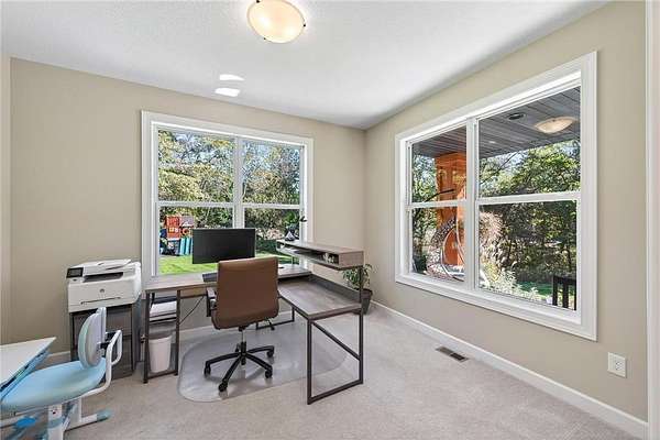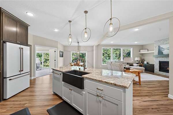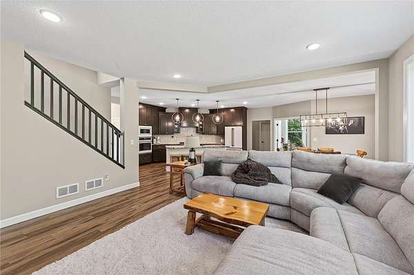 Welcome to this stunning 2-story home in the highly sought-after Woodlands of Livonia, built in 2019 and perfectly situated on a beautiful 2-acre corner lot. This property offers the ideal blend of luxury and functionality with high-end finishes throughout and an abundance of space inside and out. The heart of the home features a modern open-concept layout, perfect for entertaining or relaxing with family. The walkout finished basement adds even more living space, ideal for a family room, gym, or guest suite. Car enthusiasts will love the spacious heated 5-stall garage with epoxied floors and an extra 5th stall on the side of the home--perfect for additional storage, toys, or a workshop. A sound-proof flex room provides a quiet space for work, music, or hobbies. Surrounded by mature trees and nestled in a serene neighborhood with walking trails and wildlife, this home delivers the peace of country living with the convenience of being close to town.