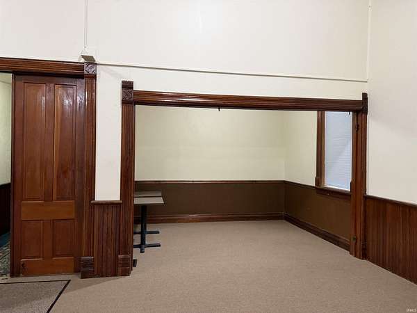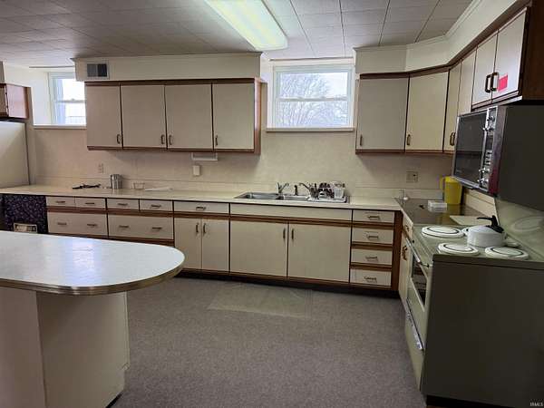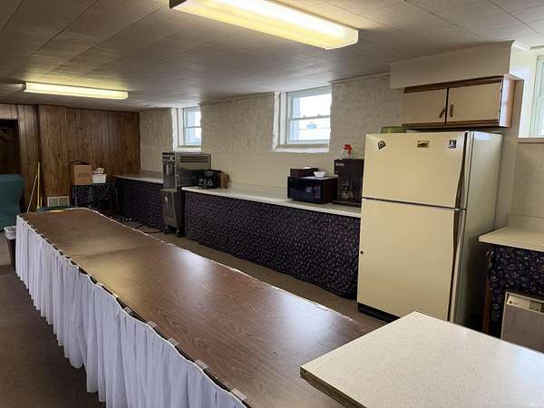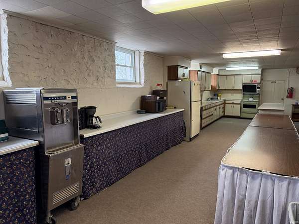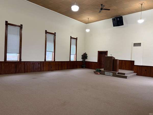 This church building has beautiful wood work remaining! Can be used for a residence, but is zoned commercial now. A large - fully functional kitchen/fellowship area. Two rooms in the basement can be used for offices or storage. 4 bathrooms, 2 large classrooms on the newer south end, and 2 smaller rooms used as nurseries, remain on the older north end. The main sanctuary doesn't have any pews or chairs. Seller is replacing 5 windows, 2 doors, placed 4 new dawn to dusk lights on the outside. This property is listed as commercial because that's what it's current zoning status is. *A 99'x406' vacant lot will be deeded with this building. All of the items in the church will remain and sold with the building, except tools and ladders that the current owner is using yet. Buyer to verify square footage & taxes for future use.