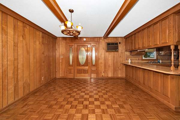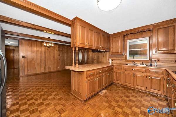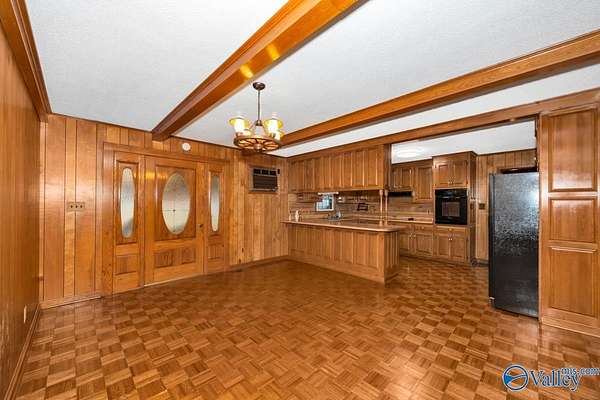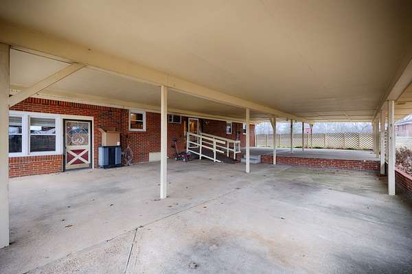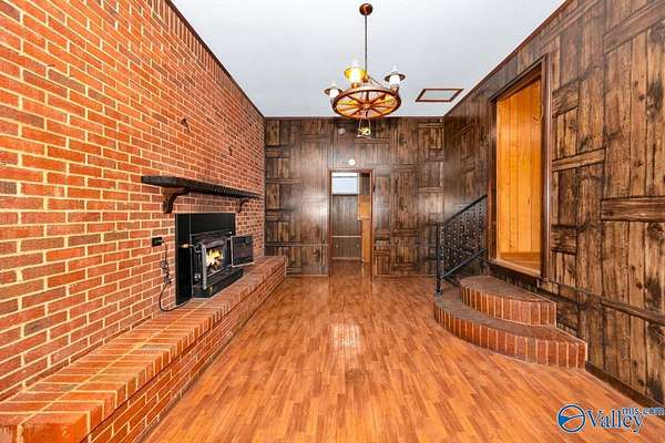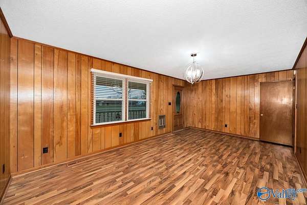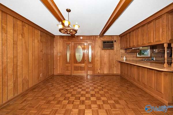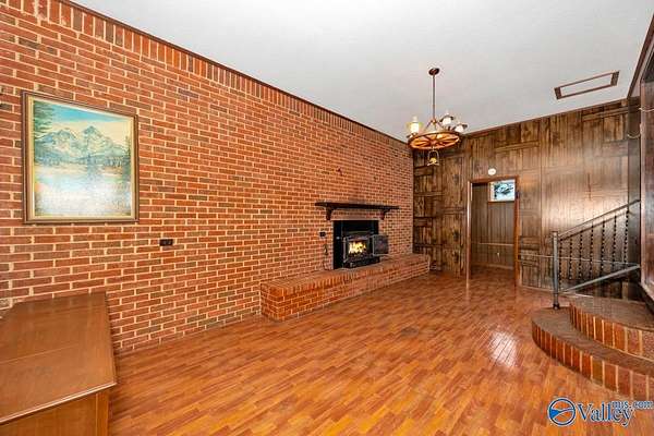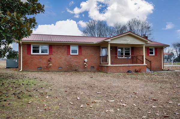 This 3BR/2BA 1652sf full brick home sits on approximately +/- 2.3 acres in a rural setting. It includes 2 outbuildings, fencing suitable for some livestock, and an in-ground storm shelter. Enter the spacious living room with lvp flooring from the covered front porch. The hallway leads to all three bedrooms and 2 recently updated 3/4 baths. The breakfast room has beautiful, exposed wood beams and flooring that leads seamlessly into the kitchen with an abundance of counterspace and wood cabinetry. The large den has vinyl flooring and a brick fireplace serving as the focal point. The laundry room has vinyl flooring, wood cabinets for storage and connections for a washer and dryer.