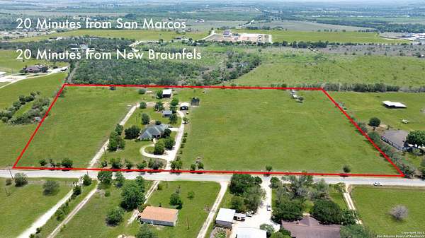Bring your Horses and your mother-in-law! Priced below appraisal value and USDA $0 down eligible. Discover the perfect blend of privacy and proximity with this well maintained 4/2 (2629 sq ft) home with a 1/1 (480 sq ft) Guest House situated on 13.08 acres perfectly located near San Marcos and New Braunfels. Tucked away in a quiet setting, yet only a short commute to Austin and San Antonio with easy access to I-35. This property offers the ideal setting for anyone with horses or looking to own them. The main home features spacious living areas, a functional layout, and room to make it your own, while the separate guest house provides endless possibilities-perfect for multi-generational living, rental income, or a private office space. The land is fully usable and ready for horses, cattle, or other livestock, with plenty of room to roam. Whether you're dreaming of a small hobby farm, a peaceful retreat, or space to grow, this property has the potential to do it all. Bring your toys with ample RV storage and a large Gazebo area perfect to put an outdoor kitchen or host all the friends and family.