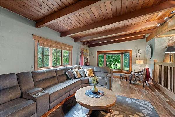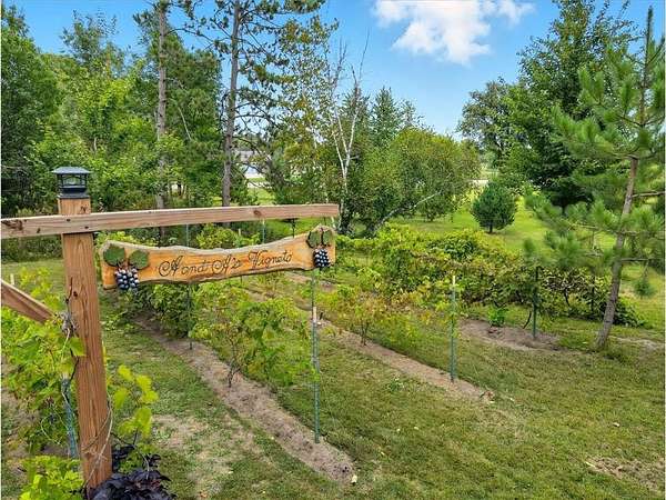Wow! Make this beautifully handcrafted home your private sanctuary. Nestled between trees on over 3 acres in Ham Lake with easy city access. This custom home boasts a beautiful vineyard, huge garden, approximately 1 acre of fenced-in back yard complete with new patio and pergola, fire pit for hosting family and guests, and a chicken coop if fresh eggs are your thing! The huge opened farm-style kitchen overlooks your private oasis in the back yard. The custom made center island will bring everyone together. Extra wood shop area in garage for all your projects. This is truly a "one of kind" home with character and functionality. Almost every room has been updated with loving care. Enjoy grilling indoors in the winter months in the sun room complete with grill and chimney. If you love nature and convenience, this is the home for you!