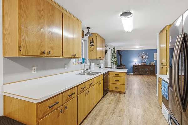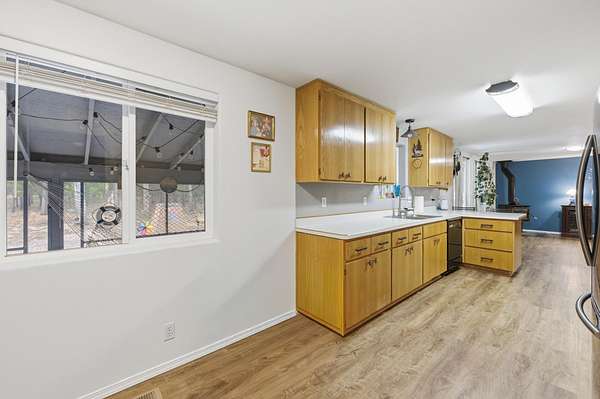 Welcome to this spacious 3-bedroom, 2-bath home offering comfort, privacy and room to roam ~ brand-new carpet and luxury vinyl plank flooring throughout, along with a thoughtfully designed layout featuring a private primary suite separated from the additional bedrooms. The large kitchen provides abundant storage. The living area features a sliding glass door that leads to an screened in patio, perfect for relaxing while overlooking the beautifully secluded, fully fenced 9.3-acre corner lot located on a quiet cul-de-sac. Outside, enjoy a blacktop driveway, double-car garage, and additional covered parking. A massive 36x30 shop with 110 & 220 power and an attached carport for boat or RV. 30 amp RV plug. This property combines space and privacy in a truly special Central Oregon setting. Well/Water pump inspected 2023. HVAC (Heat/Cooling) inspected in 2025. Septic inspected/pumped 12/2025. Seller offering $5000.00 towards buyer closing costs. Owner is licensed Real Estate Agent in Oregon.