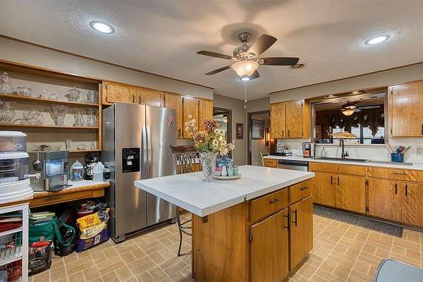 - Blinds, Ceiling Fan(s), Electric Water Heater, Kitchen Island