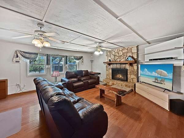 Calling all hobbyists and craftsmen! This 3-bedroom, 2-bath home on 2.57 wooded acres is perfectly designed for both comfort and creativity. The tastefully remodeled kitchen features granite countertops and generous dining space, setting the stage for a warm, social atmosphere. A spacious covered back porch extends living outdoors-ideal for dining, relaxation, or grilling. For projects or a home-based business, the detached workshop offers dedicated, well-lit work areas with ample storage. Two attached storage rooms plus two powered sheds provide additional flexibility. Practical features include a 2-car garage, RV storage, abundant storage throughout, and a generator set up to power the house. The property is exceptionally clean and move-in ready, with deer roaming the shaded lot. Just 10 minutes from downtown Kerrville and about an hour from San Antonio, this home blends the best of Hill Country living with unmatched versatility.