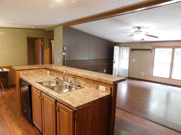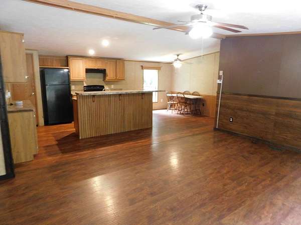 Est $1,338/mo2014 doublewide home featuring an open floor plan that seamlessly connects the living room, dining room, and kitchen and offers three bedrooms and two bathrooms. Exterior features include a covered front porch with an open deck, laundry room with direct access to covered back steps. Property also presents the possibility of camper hook-ups, two sheds for storage, and a stream, all set on a spacious 14-acres.