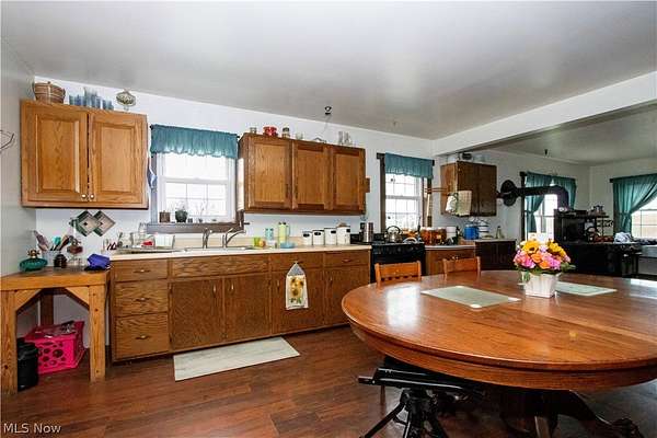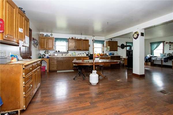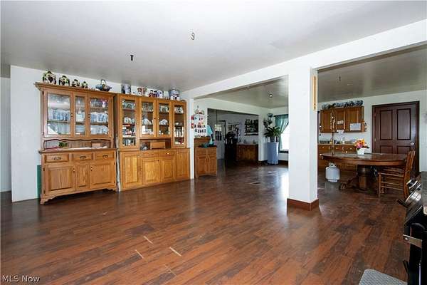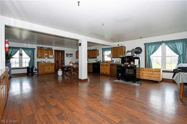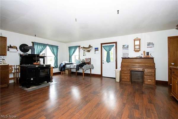 If you're looking for a large home with a awesome sunset views in Southwestern Holmes County you've found it! Huge house with 7 Bedrooms and 2 Bathrooms and a 5 stall, 2 story bank barn are the improvements to the property. The main floor sports an eat in kitchen, huge living room area, a sewing room/ office, 2 bedrooms, and a full bathroom. The main floor was remodeled in 2021 and at the same time the second floor was added. Second floor features 5 large bedrooms and a big open space at the top of the stairs that would give you plenty of space to add in that third bathroom if you need. The second floor is drywalled and is ready for your flooring, paint, and trim to finish it out. The basement has a full bathroom and is otherwise unfinished with the wood burning stove and the wood fired water heater at the center. There is a utility room, a canned goods room, a large laundry area and some cabinetry downstairs as well. Private well and septic. There is also electric service to the house. Heating source is wood. The bank barn is a great addition to this country property with it's 5 box stalls, an area for your chickens, and a tack room downstairs and hay storage or whatever you need in the top story. There is a large fenced in pasture with good fence and also behind the house you'll find a small thicket almost surrounded by crop fields which adds the possibility of a small personal hunting spot for the family. This is a nice opportunity with 10 acres of very nice property and great hilltop views in Holmes County! Don't wait, call today to schedule your private showing!