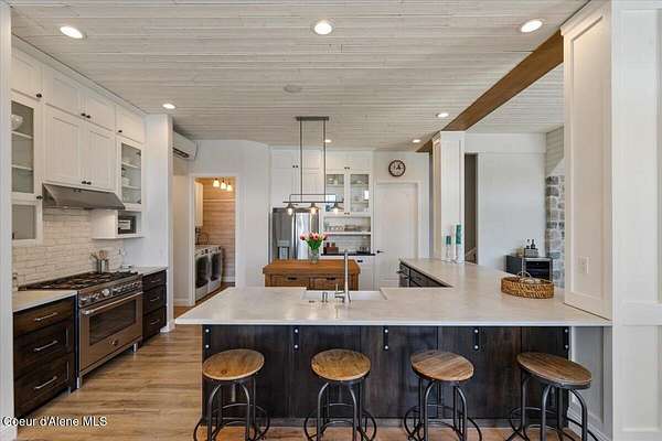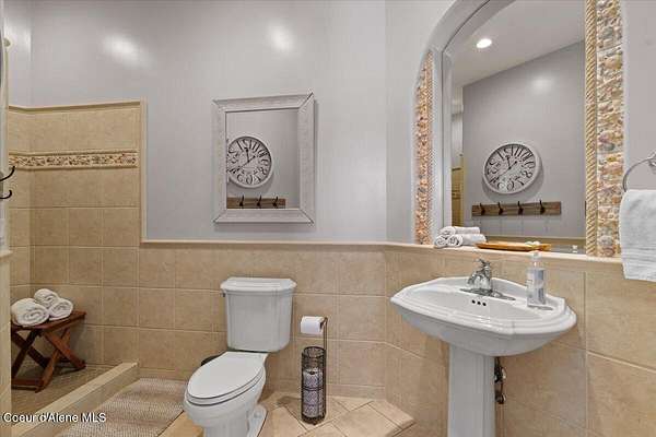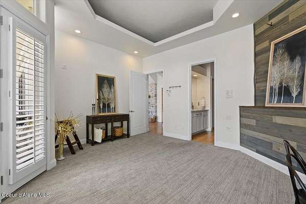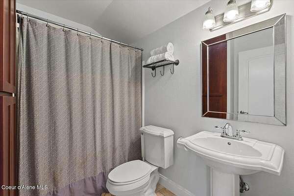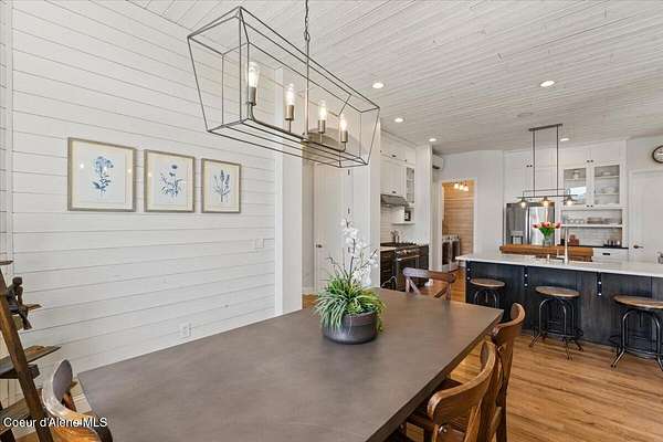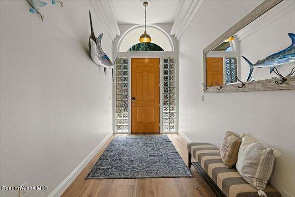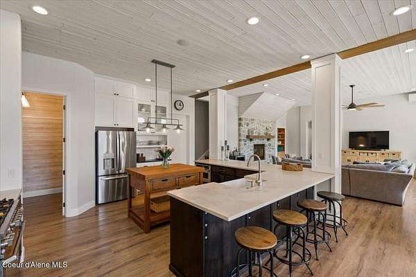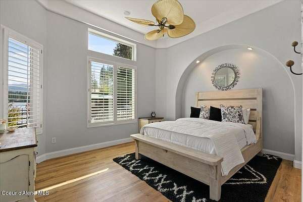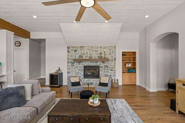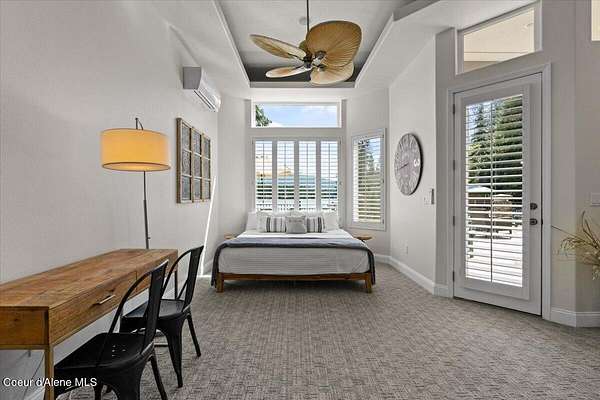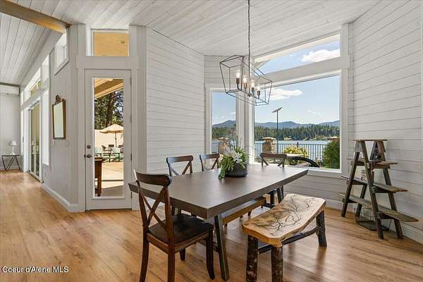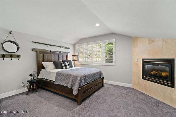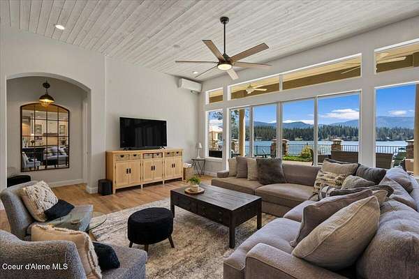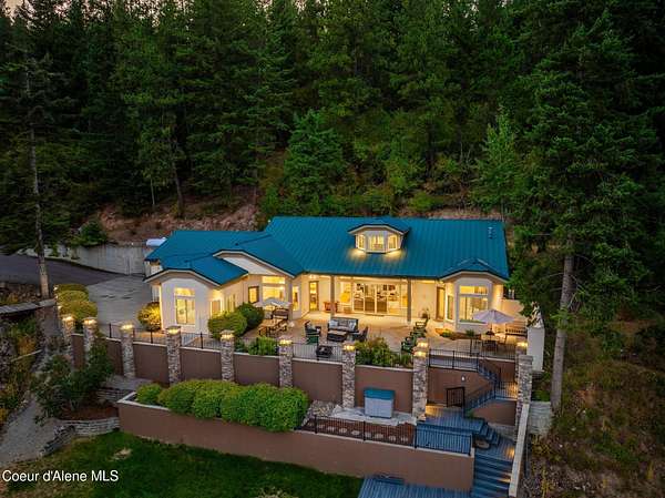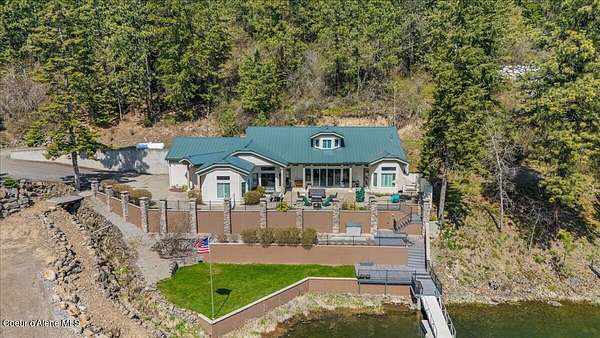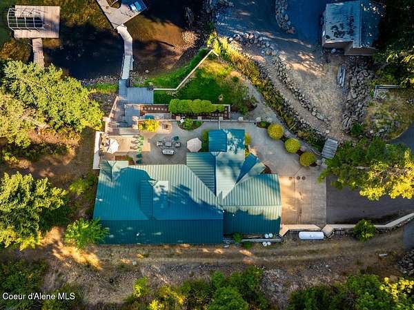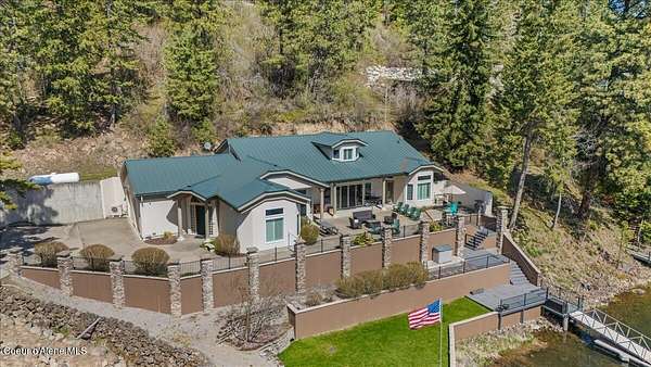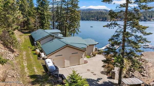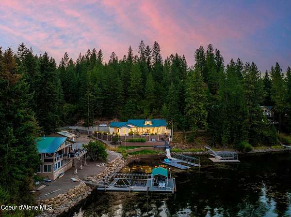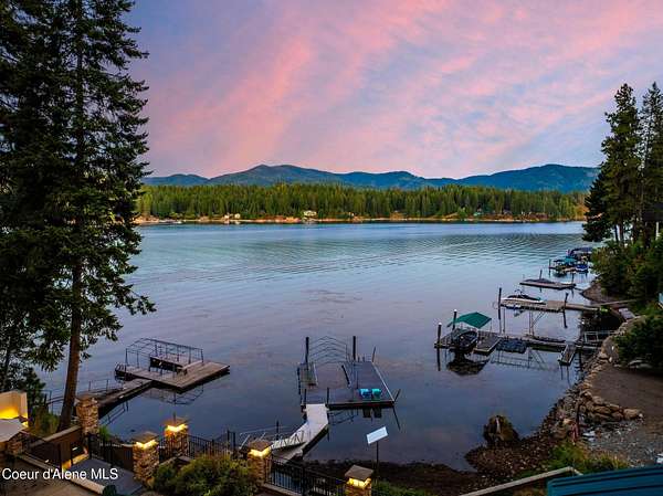 Enjoy the best of lake living with this beautifully updated, year-round home offering 78 feet of prime southern-facing frontage on Hayden Lake's coveted west shore. Tucked away on over an acre for ultimate privacy, this 4-bedroom + loft office home showcases breathtaking lake views and high-end finishes throughout. The thoughtfully designed main level features two en-suite bedrooms, a light-filled great room with a gas fireplace, and an elegant kitchen with concrete countertops, walk-in pantry, and radiant in-floor heating. Enjoy whole-house audio, a cozy home theater, and generous living spaces perfect for entertaining or relaxing in style. Step outside to your private dock with a covered boat slip, a heated oversized garage, and expansive outdoor areas ideal for soaking in the summer lifestyle. Just minutes from town, golf, dining, and shopping, this is a rare chance to own a turn-key lakefront property in a premier location. Bonus: The adjacent lot, complete with its own dock, is also included in the sale.