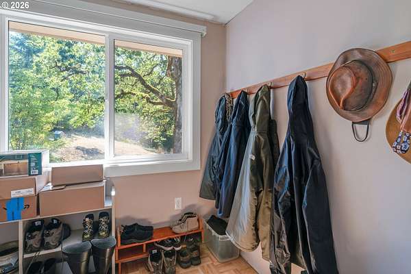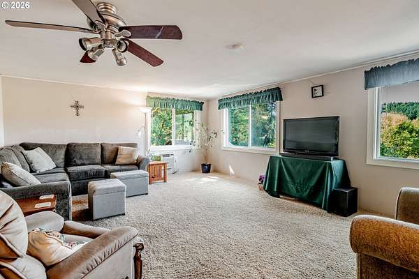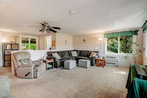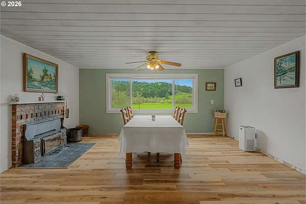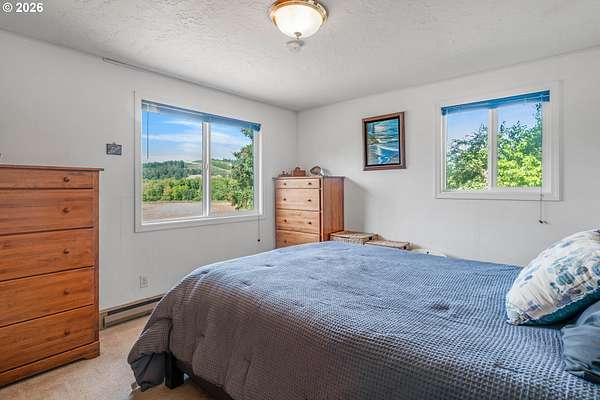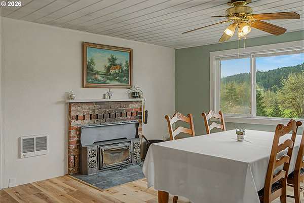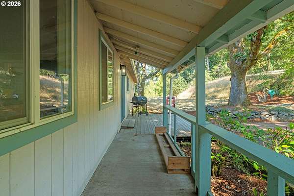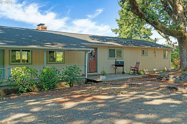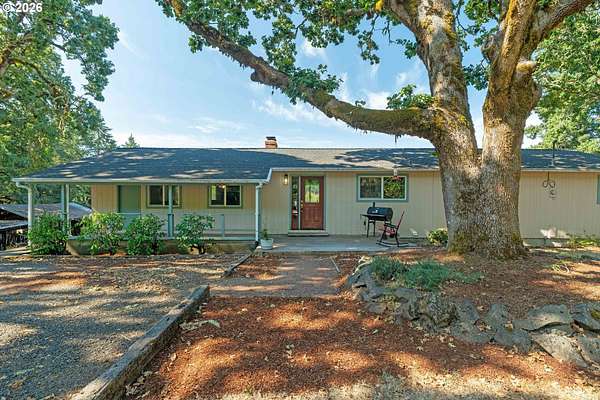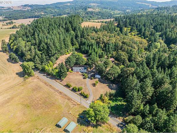 Nestled among the trees with breathtaking valley views, this 5-bedroom, 2-bath ranch-style home offers privacy, comfort, and versatility in the heart of Oregon wine country. Visitors often rave about the beautiful property, where you'll find fruit trees, a fenced garden area, and abundant wildlife, from deer and owls to the occasional elk herd. Inside, the main level features a bright kitchen with adjoining dining area and cozy fireplace, a spacious living room, mudroom with separate entry, three bedrooms, and a fully updated hallway bathroom. The finished lower level is perfect for multigenerational living or rental income with its own entrance, full kitchen, living room with fireplace, two bedrooms, full bath, laundry, and storage. Two operating wells serve the property and can be switched, plus a secondary well can run independently. Enjoy seasonal creek views, 2 outdoor decks, nearby bird sanctuaries, and proximity to top wineries, Chehalem Ridge Nature Park, Bald Peak Park, and charming downtown Newberg-just 15 minutes away. Close to shopping yet offering serene country living, this property delivers space, beauty, and endless possibilities.