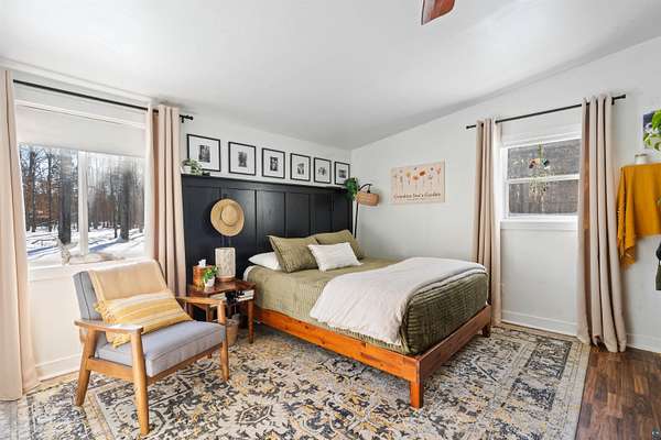 Gorgeously Updated Ranch Home!! Oh La La!! Set on 1.67 acres in the peaceful small Eau Claire Acres community is this darling Move-In Ready 2 Bed/1 Bath Ranch home that comes with an oversized 3 car detached garage with a heated workshop area too! Within the last 5 years, this cute and cozy home has been refreshed top to bottom, and YOU will get the benefits of all the updates! Featuring open Log beams in kitchen and living rooms, a Galley Style Kitchen with new appliances, a gas fireplace, a very spacious living room, an updated bathroom with stackable laundry and an awesome walk-in shower. The lot is private and peaceful with beautiful mature trees gardens, with raised beds, rasberry bushes, and /==your own firepit and new fencing (30X40) for your dogs too. A new deck, and a very nice garden shed round out the amenities, sit back and relax and enjoy watching the abundance of wildlife. And an added bonus is the joint use of a lot on the Eau Claire River that the community shares.