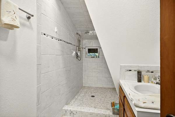 - Ceiling Fan(s), Linen Closet, Pantry, Smart Thermostat, Soaking Tub, Stone Counters, Tile Counters, Tile Shower, Wired For Sound