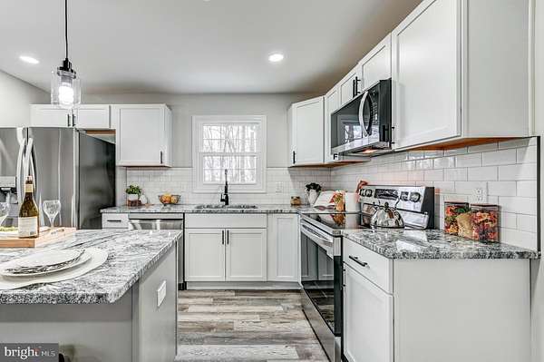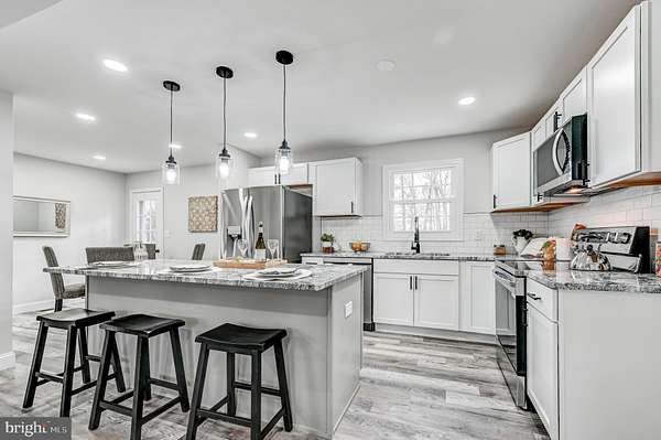 This is the ONE you've been waiting for! Stunning Full High End Luxury Renovation from Top to Bottom! Everything is brand NEW! 6 Bedrooms, 4 Full Baths, 2 Car Garage, 2 Driveways with tons of parking, Completely Modernized with Open Floor plan, and Huge 1.88 Acre Lot. Awesome Country setting, Big Brand New Deck and Patio over looking spacious backyard. New everything: Roof, Siding, Windows, Gutters, Kitchen, Bathrooms, Luxury LVP Flooring, Stainless Appliances, Paint, HVAC, Hot Water Heater, Well Pump, Well Pressure Tank, etc.. Luxury gourmet kitchen with brand new cabinets, exotic granite countertops, subway tile backsplash, stainless appliances. Custom bathrooms with ceramic tile, custom glass seamless shower door, and back lighted mirror. Open Modern floor plan that is perfect for entertaining. Huge fully finished basement with tons of open space and walk out level. Driveways with double entrances that can accommodate parking for a fleet of vehicles! Private backing rear yard. Run, do not walk to this one! 10+++++!!!! Available immediately for quick settlement.