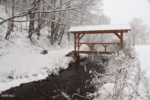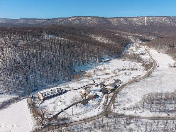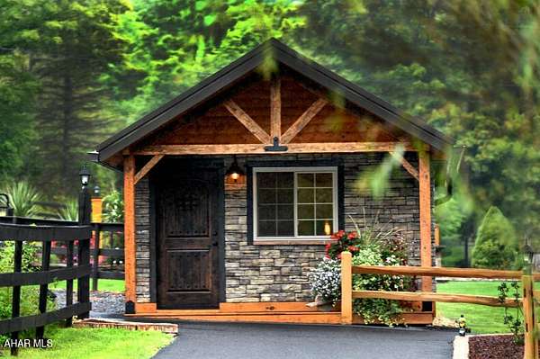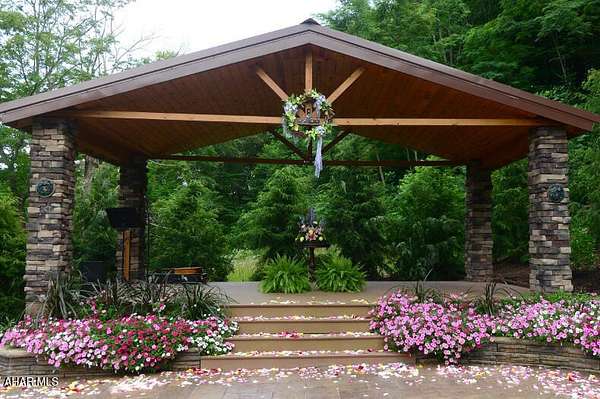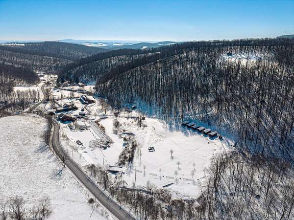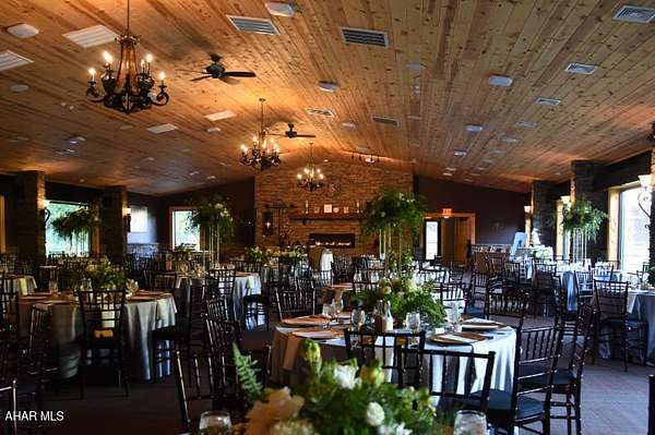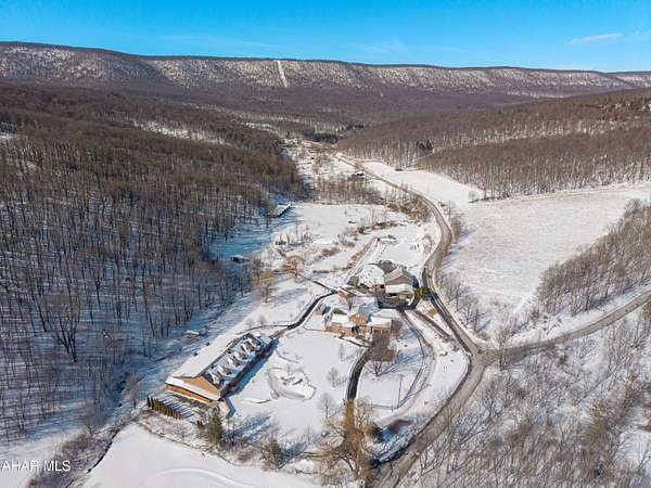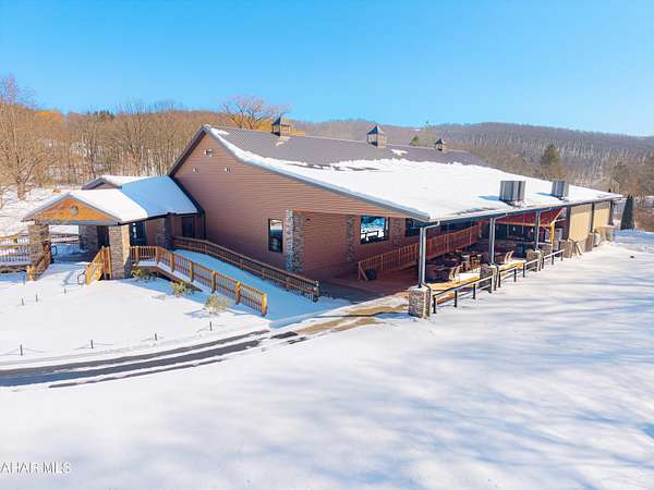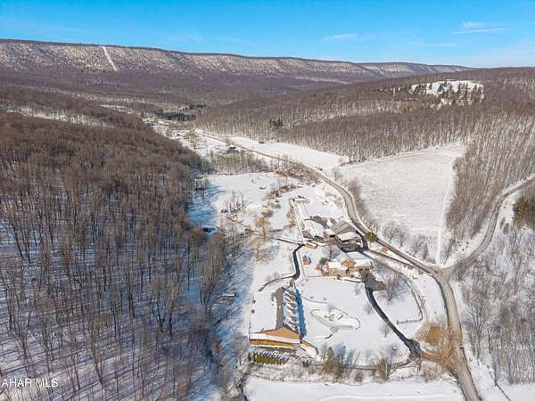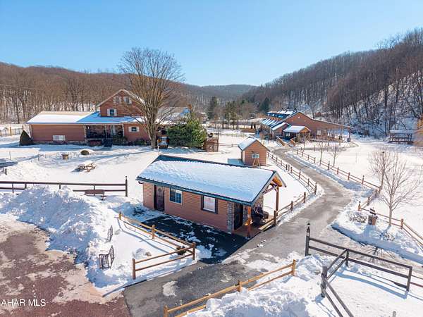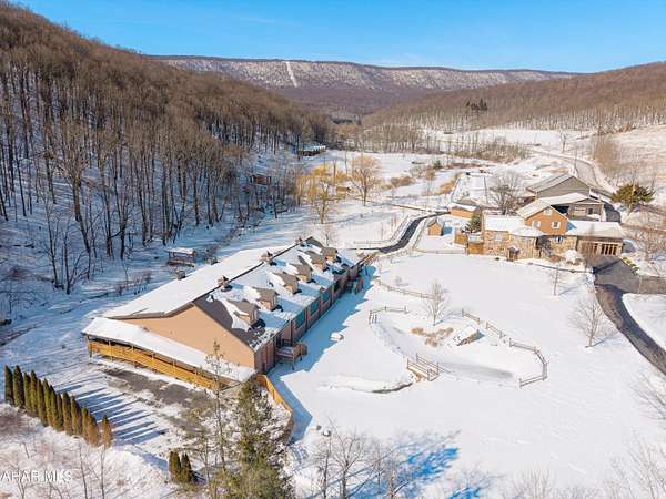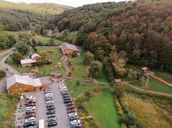 Designed and custom built in the rolling hills of Central PA. This Estate offers a once in a lifetime opportunity to own a extremely established and well known wedding Resort which average's over $250,000 in revenue a year including this 2026 season and booking 2027. This rare opportunity is a Turn-key operation with management, staff, equipment, advertising, and sales in place and operating. The Estate sits on 39.23 acres with a rolling stream, two covered bridges, a waterfall, hiking trails, decorative pond, and a stone vehicle bridge. The Estate offers multiple structures including: Main House, a 4900 sq ft (gross living area) main residence which offers a granite gourmet kitchen, a large great room with custom fireplace, custom dining room, 3 bedrooms, 2 1/2 baths, large walk in closet, a game room, movie theater room, weight room, office and a 2 & 1/2 heated car garage; Whispering Lodge, a 5000 sq ft custom built reception hall that can hold 260 guests, custom dance floor, elegant built in bar, 800 sq ft prep room, custom large restrooms, a 1600 sq ft covered patio that includes a custom bar, brick oven pizza oven and covered ramp with loading area for vendors; Whispering Cove Cottages, six (6) beautiful custom built intimate cottages with all amenities, 420 sq ft with full baths, heat, A/C Queen Bed and Living area; The Barn, which offer a 2-story Bridal room with a Living room, Make-up room, Kitchen, Master bedroom, Hair salon, 1 & 1/2 baths. Lots of designed storage on multiple floors, a plumbing room, employee restroom, drive through golf cart charging garage and four stables. The barn also has a 24 x 50 covered carport into the parking lot; Maintenance Shop which is a 896 sq ft shop with heat and a 20x20 covered carport for a car wash; The Gift shop, 380 sq ft cottage for cottage check-in and sales; The Chalet is a secluded 1200 sq ft located deep in the woods, one bedroom, loft, kitchen, full bath, and living room with custom fireplace; Rolling waters courtyard is a 40x140 ceremony location tucked into the hillside for hosting wedding ceremonies or live entertainment. If you have always wanted to own a wedding resort this is a truly once in a lifetime opportunity to purchase a complete operation which is producing revenue as is.
