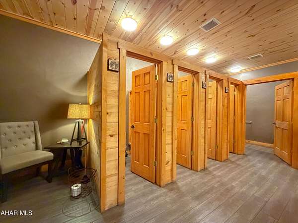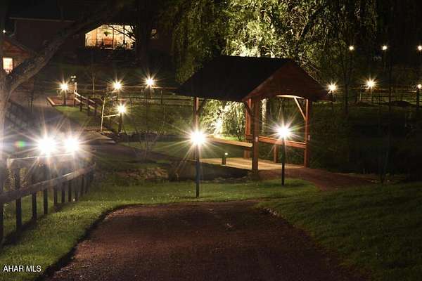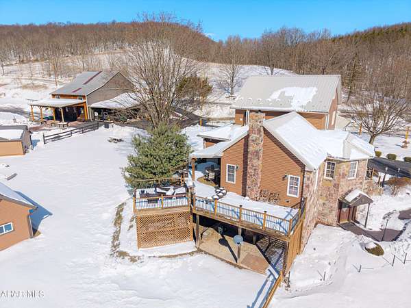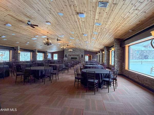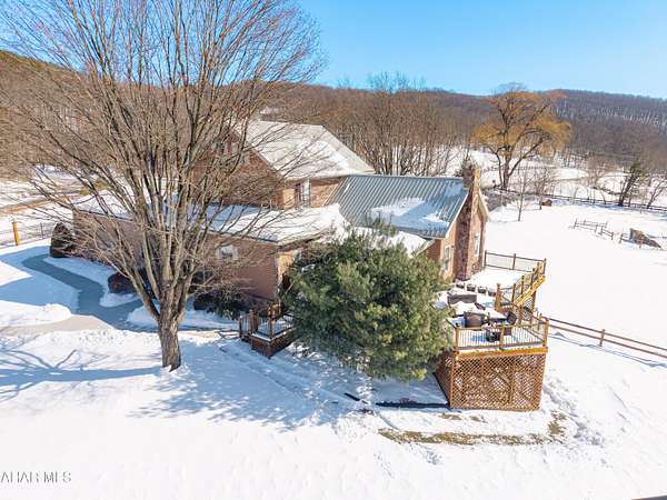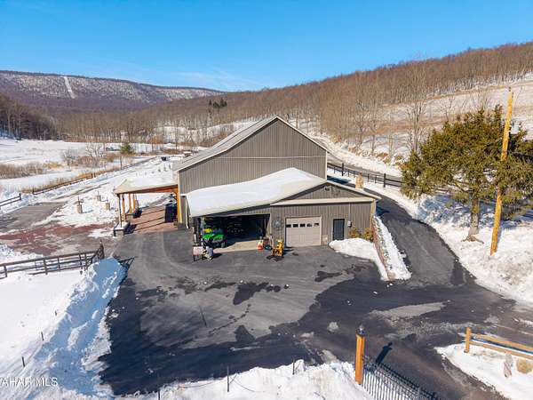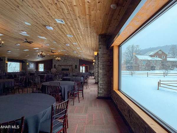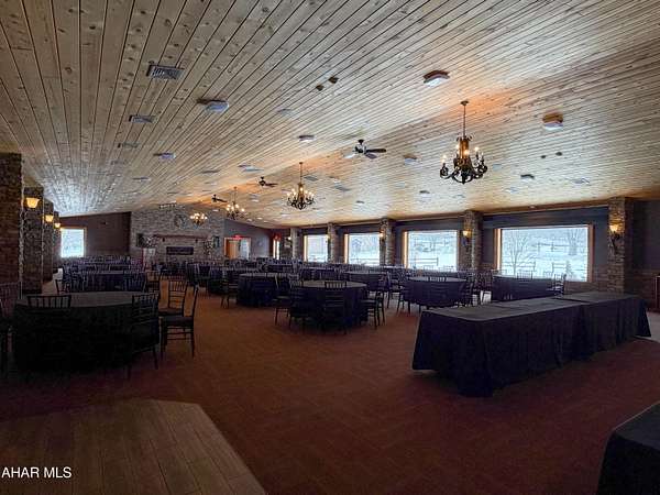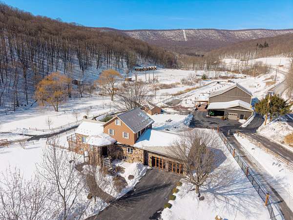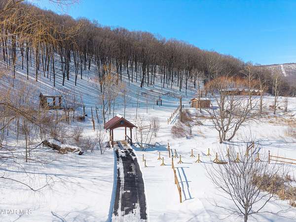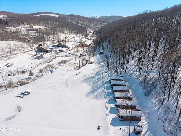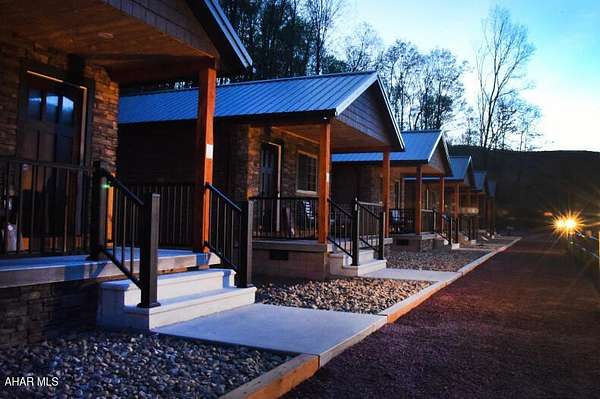 Designed and custom built in the rolling hills of Central PA. This Estate offers a once in a lifetime opportunity to own a extremely established and well known wedding Resort which average's over $250,000 in revenue a year including this 2026 season and booking 2027. This rare opportunity is a Turn-key operation with management, staff, equipment, advertising, and sales in place and operating. The Estate sits on 39.23 acres with a rolling stream, two covered bridges, a waterfall, hiking trails, decorative pond, and a stone vehicle bridge. The Estate offers multiple structures including: Main House, a 4900 sq ft (gross living area) main residence which offers a granite gourmet kitchen, a large great room with custom fireplace, custom dining room, 3 bedrooms, 2 1/2 baths, large walk in closet, a game room, movie theater room, weight room, office and a 2 & 1/2 heated car garage; Whispering Lodge, a 5000 sq ft custom built reception hall that can hold 260 guests, custom dance floor, elegant built in bar, 800 sq ft prep room, custom large restrooms, a 1600 sq ft covered patio that includes a custom bar, brick oven pizza oven and covered ramp with loading area for vendors; Whispering Cove Cottages, six (6) beautiful custom built intimate cottages with all amenities, 420 sq ft with full baths, heat, A/C Queen Bed and Living area; The Barn, which offer a 2-story Bridal room with a Living room, Make-up room, Kitchen, Master bedroom, Hair salon, 1 & 1/2 baths. Lots of designed storage on multiple floors, a plumbing room, employee restroom, drive through golf cart charging garage and four stables. The barn also has a 24 x 50 covered carport into the parking lot; Maintenance Shop which is a 896 sq ft shop with heat and a 20x20 covered carport for a car wash; The Gift shop, 380 sq ft cottage for cottage check-in and sales; The Chalet is a secluded 1200 sq ft located deep in the woods, one bedroom, loft, kitchen, full bath, and living room with custom fireplace; Rolling waters courtyard is a 40x140 ceremony location tucked into the hillside for hosting wedding ceremonies or live entertainment. If you have always wanted to own a wedding resort this is a truly once in a lifetime opportunity to purchase a complete operation which is producing revenue as is.