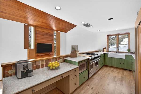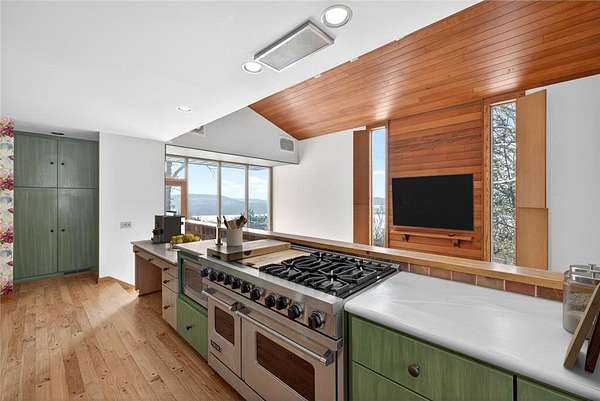 Set on nearly 3 acres at the end of a quiet cul de sac in Weatherhill with truly unmatched and absolutely gorgeous views, this extraordinary multi split home offers more than 4,800 finished square feet of custom crafted living space with striking design elements throughout. The spacious 5 car garage stalls total 1,500 plus square feet and accommodate everything from hobbies to vehicles. From the moment you arrive, the striking architecture and layered design invite exploration, whether relaxing by the fireplace with redwood backdrop in the vaulted great room, enjoying meals outdoors, or spending quiet time on one of several patios or screened porches. With 4 spacious bedrooms and 4 bathrooms, the home offers warmth, character, abundant natural light, and panoramic views from nearly every room. Recent improvements include a newly installed septic system, freshly refinished hardwood floors, and interior painting in select rooms, enhancing both function and presentation. The primary suite features hardwood flooring, a beautiful fireplace, a huge walk in closet, and a spa inspired ensuite with skylight, tiled shower, and soaking tub. The home blends enduring materials like redwood ceilings with minimal maintenance features including steel siding, a steel roof, and encased windows. The custom kitchen offers ample cabinetry, a large high end range, and a farmhouse sink beneath a wide picture window, while the open layout overlooks the den. The flexible floor plan includes a cozy den, family and media rooms, and adaptable spaces ready to evolve with each phase of life. The surrounding landscape offers the gentle sound of a waterfall and pond, garden beds, and terraced stonework, all carefully maintained and curated for peaceful living. Meticulously designed and thoughtfully improved, this home offers privacy, serenity, and functionality in one exceptional setting.