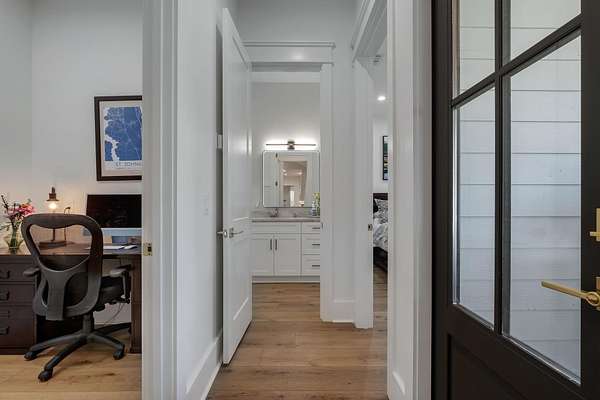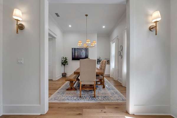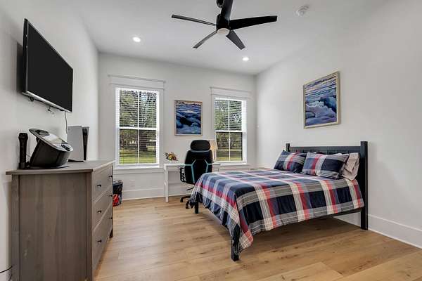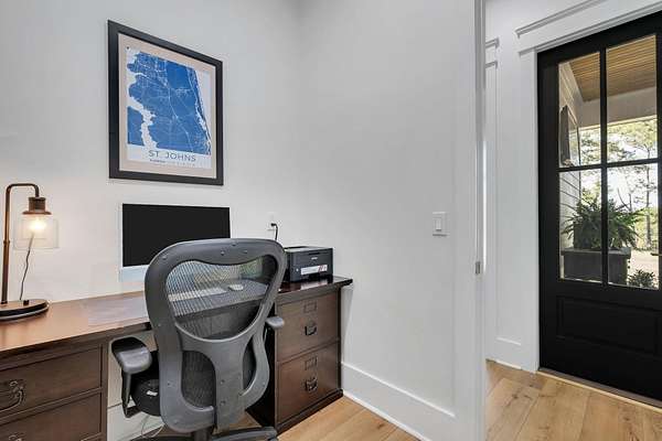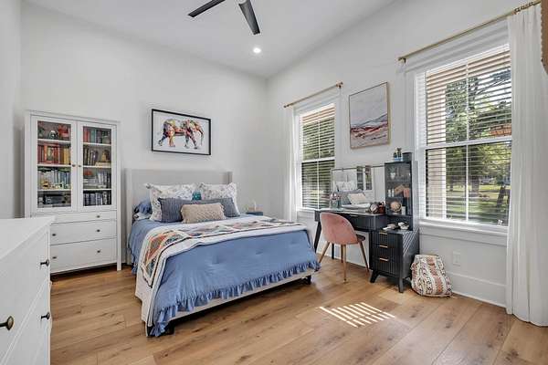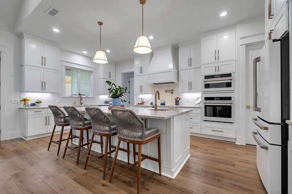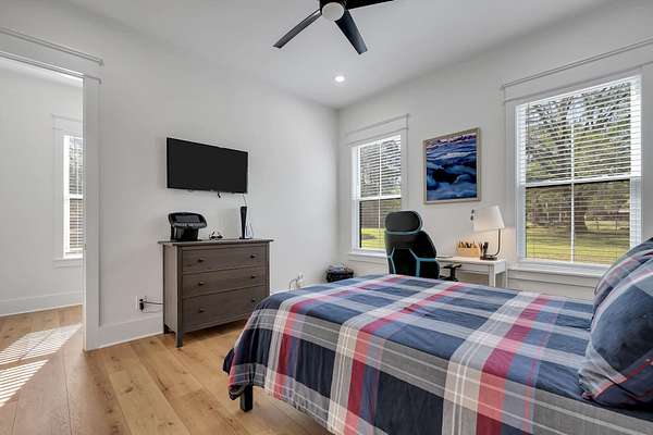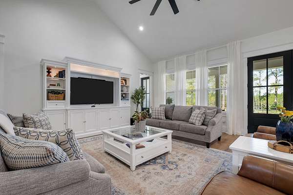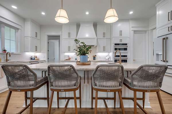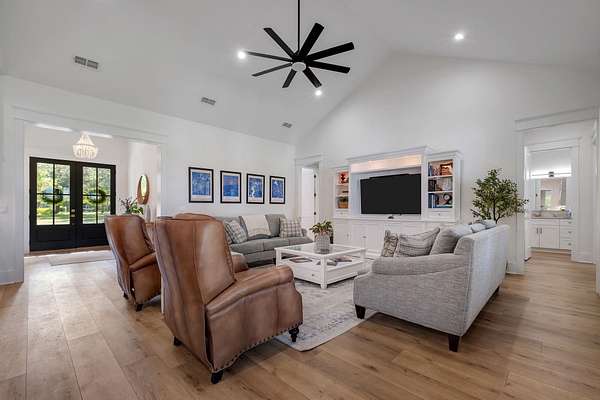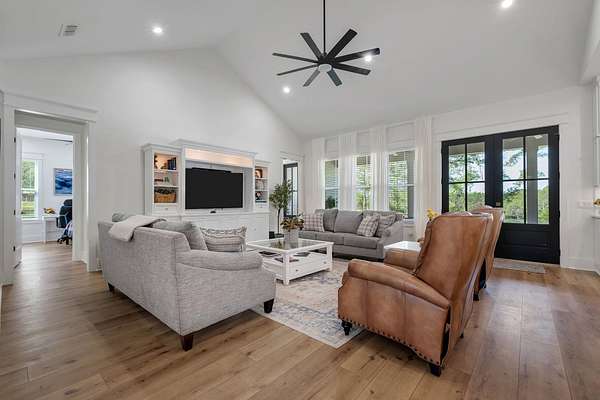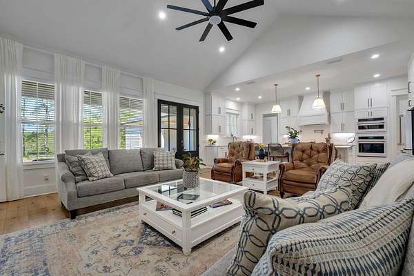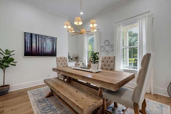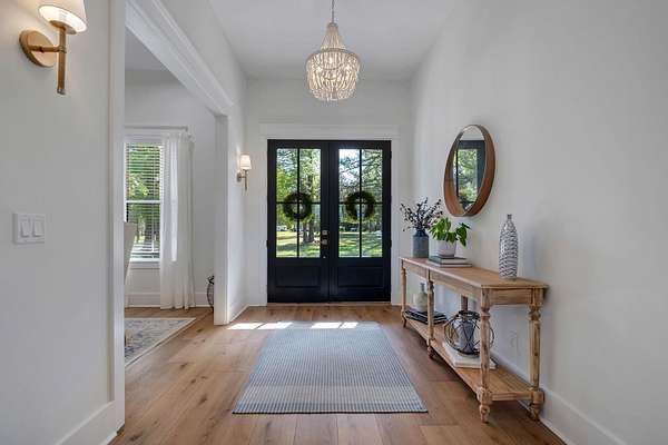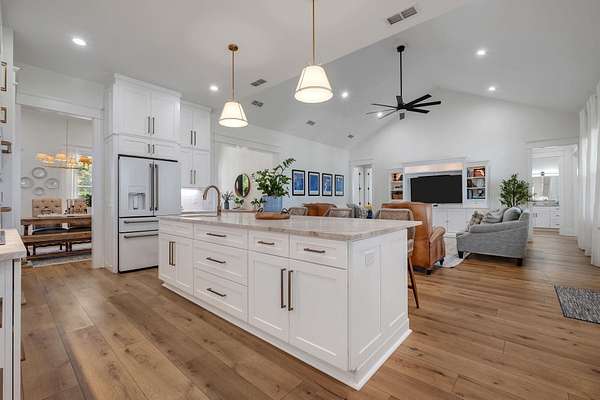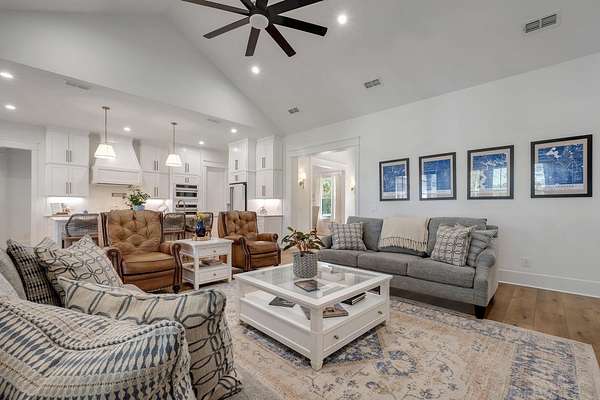 Stunning in every sense, this exceptional Southern Living-inspired home is gracefully situated on nearly three acres of beautifully open property, offering both space and serenity. Designed with comfort and functionality in mind, the home features abundant storage throughout and an impressive open-concept kitchen complete with leathered quartz countertops, extensive cabinetry, and an oversized walk-in pantry. Filled with natural light, the interior boasts soaring 10- and 11-foot ceilings, creating a bright and airy ambiance. The thoughtfully designed floor plan includes four spacious bedrooms, a dedicated office, and three full bathrooms. The private primary suite is a true retreat, highlighted by elegant tray ceilings, a luxurious spa-like bath with an expansive walk-in shower, and a custom walk-in closet with built-ins to accommodate every need. A separate guest wing provides added privacy and includes its own walk-in closet and bath. Enjoy outdoor living at its finest with a welcoming front porch perfect for rocking chairs and a swing, as well as a generous rear porch featuring a tongue-and-groove ceiling-ideal for relaxing while taking in peaceful surroundings and breathtaking sunset views. Additional highlights include a large, well-appointed laundry room with sink, refrigerator, ample storage, and a craft area; a spacious carport with extra parking; and a workshop with a roll-up door. The backyard is equally impressive, featuring an outdoor shower and pre-wiring for a generator or future pool installation. This remarkable property offers the perfect blend of elegance, comfort, and functionality in a picturesque setting. Front lawn image has been virtually enhanced.