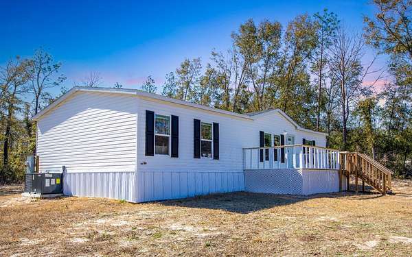 BRAND NEW & NEVER LIVED IN! This beautiful 3 bedroom, 2 bath doublewide sits on 4 private acres and is ready for its very first owner! Enjoy peaceful mornings on the large front porch deck, perfect for rocking chairs and quiet country views. Step inside to an open, spacious layout featuring a large kitchen with a pantry for extra storage and a generous laundry room with plenty of space to stay organized. The primary suite offers double vanity sinks, a relaxing soaking tub, and a separate shower. Every bedroom includes a walk-in closet giving everyone their own space and storage. Additional features include a whole-house water filtration system for added comfort and quality. Conveniently located in a NO FLOOD ZONE just 10 miles from Live Oak and 27 miles from Lake City, you get the privacy of country living with town amenities just a short drive away. If you've been looking for new construction on acreage without the wait, this is it!