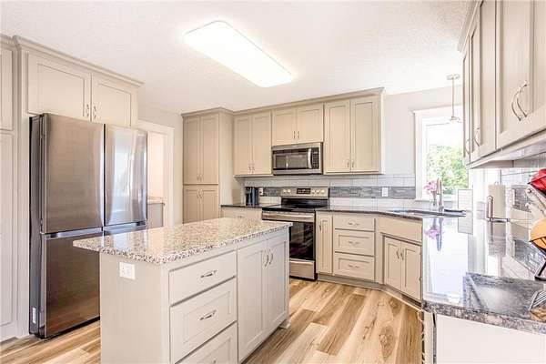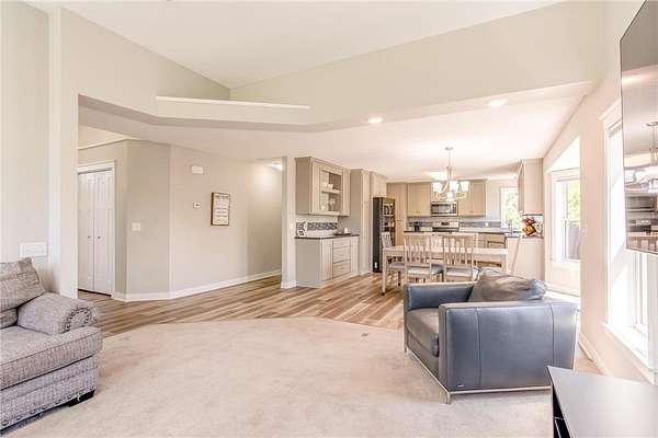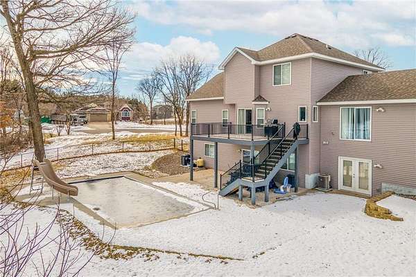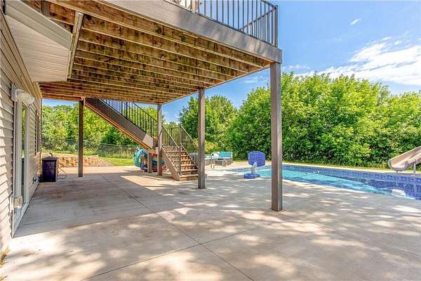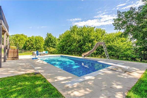 Nestled on a scenic 1.53-acre cul-de-sac lot, this exceptional estate offers nearly 5,000 sq ft of beautifully updated living space designed for comfort, functionality, and effortless indoor-outdoor living. Step outside to your private backyard retreat with a brand-new 35x16' in-ground pool complete with slide, retractable cover, and hot tub hookup—ideal for summer enjoyment. A 4-car attached garage plus a 22x22' 2-car detached garage provide all the space you need for vehicles and hobbies. Inside, you’ll discover a bright and open floor plan with soaring vaulted ceilings, abundant windows, and a stylish neutral palette throughout. The eat-in kitchen is a chef’s dream, featuring granite countertops, a custom tile backsplash, new stainless-steel appliances, a large center island, and open sightlines into the dining and living areas—a perfect setup for entertaining. A generous dining area with buffet-style bar and sliding glass door leads to the outdoor deck, while the adjacent sunlit living room boasts a gas fireplace framed by stunning floor-to-ceiling windows. Off the vaulted foyer nearby, you'll find both a den and a private office behind French doors. The main level includes a thoughtfully designed mother-in-law suite with its own private entrance via the garage, as well as two additional bedrooms, a ¾ bathroom, a family room, and a centrally located laundry room off the kitchen.