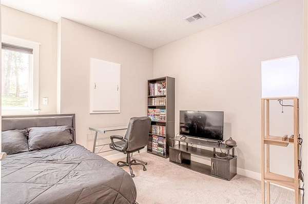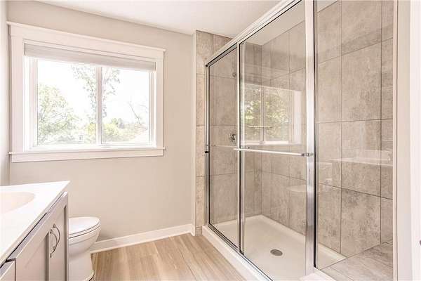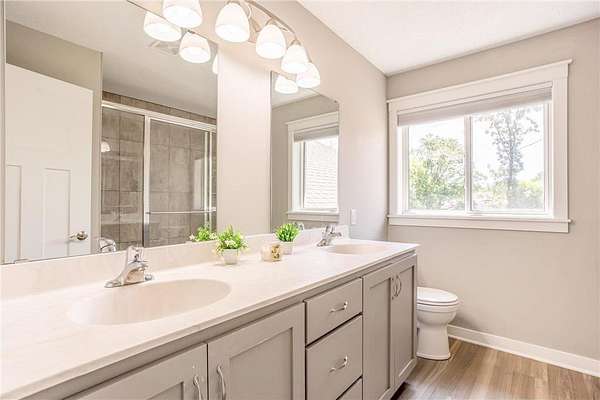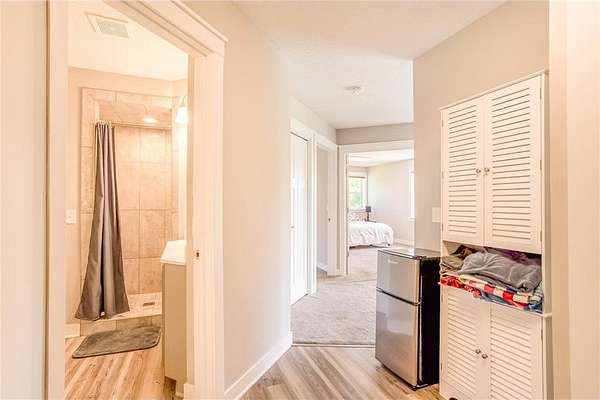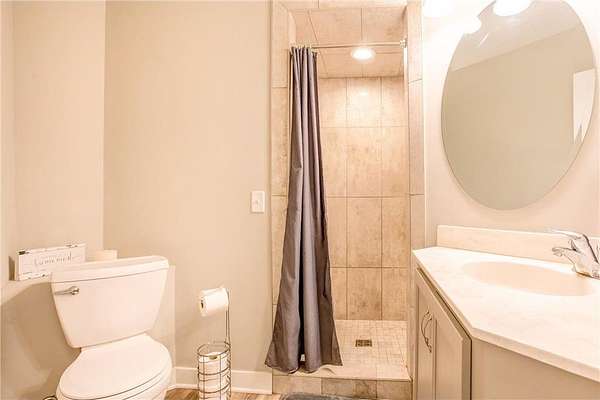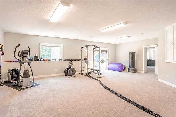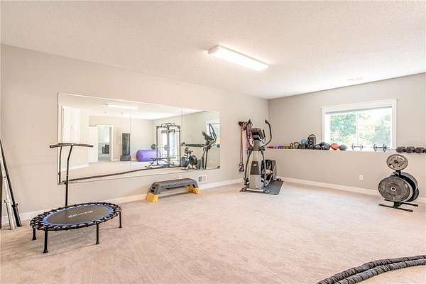 Upstairs, the private primary suite offers a spacious walk-in closet and a luxurious ¾ bath with a dual sink vanity, as well as a walk-in tile shower with glass doors, dual shower heads, and built-in bench seating. Two additional bedrooms are near the primary, each near a conveniently located full bathroom. The expansive walkout lower level is made for gathering, featuring a large rec room with card table nook, direct patio access, a sixth bedroom, full bathroom, and an impressive walkout exercise room with wall mirrors and ample space for equipment. Additional highlights include dual-zone HVAC, two new A/C units, a new furnace, and a new roof! This move-in ready home offers privacy, space, and stylish updates in a setting that feels like your own personal escape.