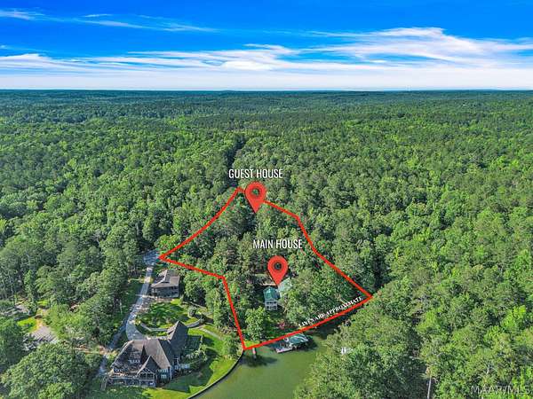 Imagine owning a private Lake Martin retreat where family and friends have their own space to stay, relax, and wake up to the water. This extraordinary 2.2-acre waterfront property features not only a stunning main home - but a 950-square-foot guest cabin with 2 bedrooms and 1 bath, making it the ultimate setup for hosting, multi-generational living, or creating a private getaway for visitors. The guest cabin offers comfort, charm, and flexibility - perfect for weekend guests, extended family, or even potential rental opportunities - all just steps from the shoreline. The main residence complements the property with 4 bedrooms and 3.5 baths, soaring vaulted ceilings, plantation shutters, and an open-concept layout designed for gathering. The spacious kitchen showcases granite countertops and stainless-steel appliances, flowing seamlessly into the living areas for effortless entertaining. The main suite is a peaceful retreat featuring breathtaking lake views and a private balcony overlooking the water. A dedicated office space adds convenience for working remotely while enjoying lake life. With over 200 feet of pristine Lake Martin frontage, the outdoor amenities are just as impressive - including a double boathouse, docking pier, and private boat ramp, giving you everything needed for unforgettable days on the water. This is more than a lake house - it's a compound-style property designed for connection, comfort, and making memories for years to come.