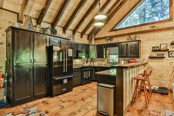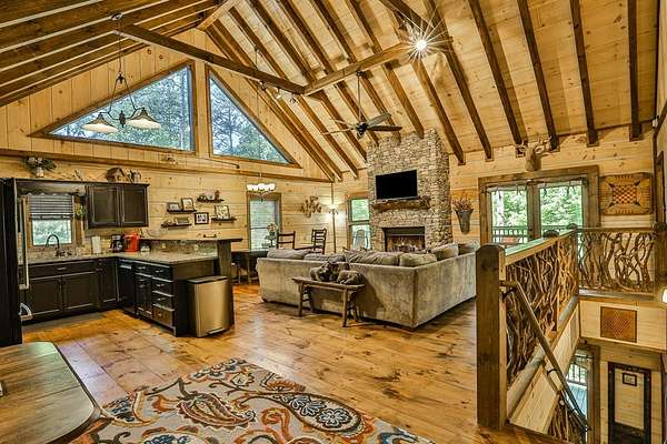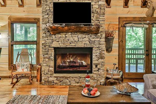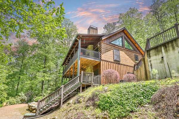 Discover Water, Wines in the Pines, a stunning creekfront retreat in the heart of Ellijay, GA, offering the perfect blend of mountain charm, privacy, and income potential. Nestled along the soothing waters of Clear Creek and just minutes from downtown Ellijay, local wineries, apple orchards, and hiking trails, this beautifully designed 3-bedroom, 3.5-bath cabin delivers an exceptional North Georgia mountain living experience. The thoughtfully designed layout features a spacious main-level master suite, additional well-appointed bedrooms, multiple living areas, and a fully equipped kitchen ideal for entertaining. Large windows and inviting indoor and outdoor fireplaces create a warm, cozy atmosphere year-round, while expansive covered decks overlook the peaceful creek, providing the perfect setting to relax and unwind. Enjoy evenings by the outdoor fireplace or gather around the fire pit by the water, fully embracing the serene natural surroundings. Whether you're searching for a full-time residence, second home, or a turnkey investment opportunity, this property offers versatility, comfort, and strong appeal in one of Ellijay's most desirable settings. Experience the best of mountain living with privacy, convenience, and the calming sounds of the creek right outside your door.
