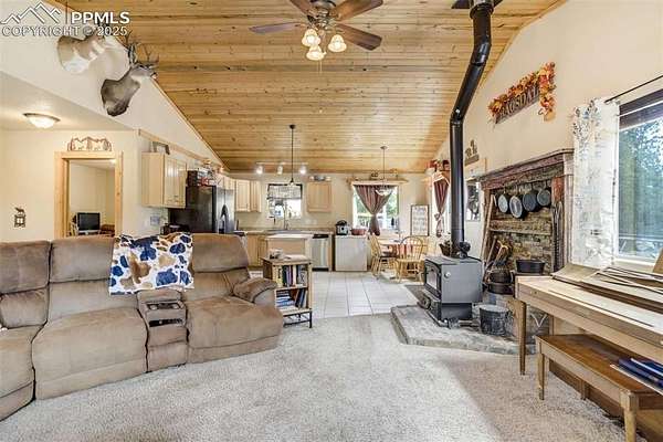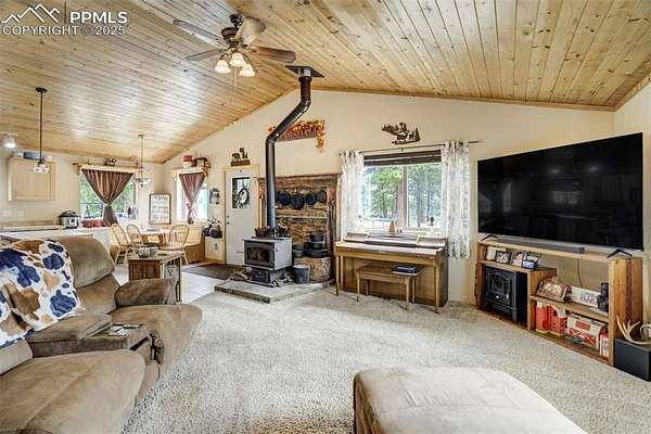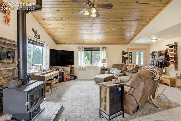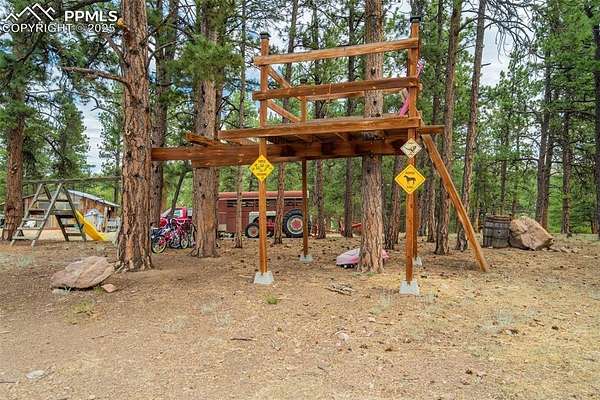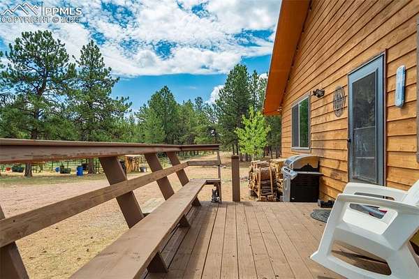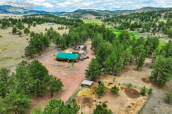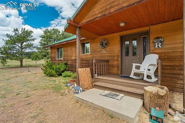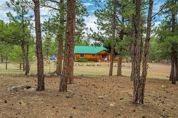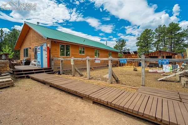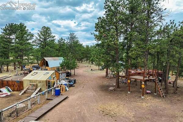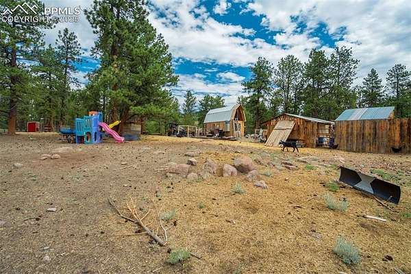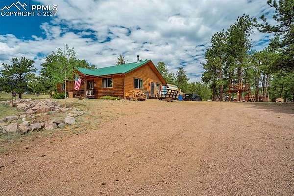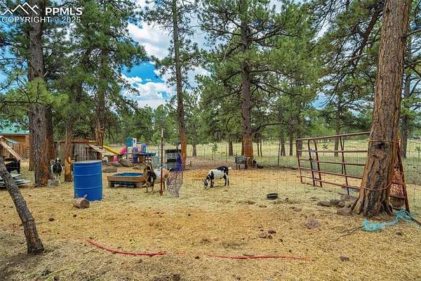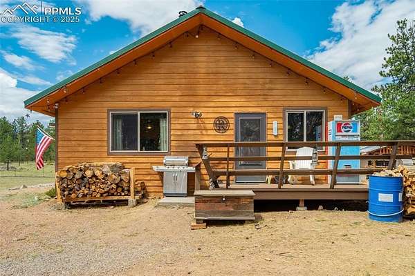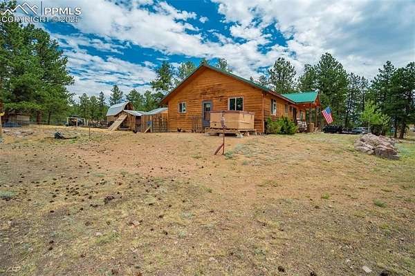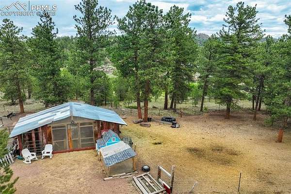 Ready to ditch the tight lots and restrictions of city living? This 3.82-acre mountain homestead offers a rare chance to live freely, grow your own food, raise animals and enjoy privacy without being far from the action. Just over an hour from Colorado Springs, this property delivers the tranquil rhythm of country living while keeping you within reach of major services and amenities. The 1,440?sq?ft 3-bedroom, 2-bath home features vaulted tongue-in-groove ceilings, tile floors in high-traffic areas and a wood-burning stove that anchors the living room with warmth and charm. Solid pine doors throughout add rustic flair as sunlight pours through abundant windows framing views of towering pines, native rock outcroppings and wide-open skies. The kitchen offers excellent functionality with ample cabinet space, a center island and a built-in dining nook perfect for slow mornings or quick bites, and an adjoining mudroom with laundry area streamlines everyday tasks. Outdoors, the land is fenced and cross-fenced into zones for horses, goats, chickens and more. A reclaimed-wood barn sits beside a greenhouse, raised beds, sheds and coops, and a treehouse invites adventure or quiet reflection. Accessed via a private drive and gated entry, the property's layout maximizes seclusion and versatility, with plenty of flat ground for RV parking or future expansion. Revel in the freedom of no covenants or HOAs, and relish year-round access on county-maintained gravel roads. Guffey's charm awaits, offering amenities such as a K-8 Charter School, Post Office, Library, and quaint eateries. For outdoor enthusiasts, endless adventures beckon nearby, from rafting and hiking to skiing and hunting. Enjoy scenic drives to nearby towns like Florissant, Cripple Creek, Woodland Park, and Canon City for additional conveniences and attractions. Whether launching your homestead, planning a peaceful retreat or embracing fully independent living, this property is equipped to support your vision!