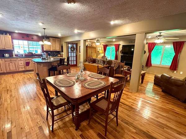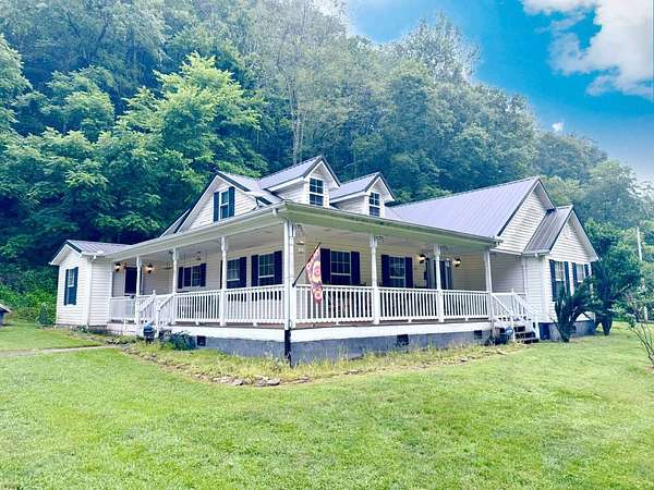 PRICE REDUCED TO $539,000-----141 Canoe Run Road, Looneyville, WV--------------Cape Cod home on 39 acres +/- with a 50x24 workshop and a 2-car garage. Ideal hobby farm with plenty of fenced pasture and woodland for the hunter. This home boasts 2,807 sq ft of space and includes 4 bedrooms, 2.5 baths, "open concept" (that includes kitchen, dining and family room), living room, laundry/mud room and unfinished basement (with cellar). Newly constructed workshop that is 24x50 with 14 ft ceilings on concrete pad. Workshop has (3) 10x10 garage doors and one-man door. Impressive features include wrap-around covered porch, hardwood floors, updated metal roof on house and garage, jacuzzi tub, city water, Starlink internet available, natural hickory custom cabinets in kitchen with island, Simple-safe alarm/cameras with remote access, walk-in closets, total renovation inside. Located off a paved road, NOT IN FLOOD ZONE, only 10 miles from I-77. Ideal country setting off a paved road. $539,000