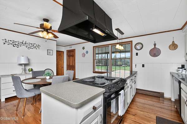 - Eat-In Kitchen, Kitchen Island, Solid Surface Counters