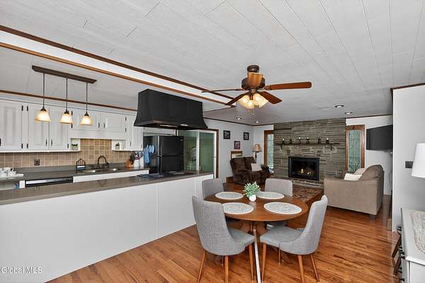 This well-maintained home offers flexible living with room for everyone, both inside and out! Set on 1.5 private acres on a quiet dead-end street, this 3-bedroom, 2-bath home features a bright and inviting layout with hardwood floors, a spacious living area with fireplace, and an open flow into the dining and kitchen spaces ideal for everyday living and entertaining. The fully finished basement expands your living space significantly and includes a small kitchen, making it perfect for an in-law suite, multigenerational living, guest accommodations, or extended living space. The attached one-car garage offers added convenience and features a woodstove, creating a warm and functional space. The garage flows directly into a large foyer/mudroom, providing the perfect transition into the home with plenty of room for coats, shoes, and everyday organization. Enjoy peaceful outdoor living with a large yard, mature trees, and a covered front porch perfect for relaxing and taking in the natural surroundings. Conveniently located near local golf courses and approximately 30 minutes to Windham Mountain Club and Hunter Mountain and just 2.5 hours from NYC. This property is a great option for those who enjoy skiing, hiking, and year-round outdoor recreation! Whether you're looking for a full-time residence or a weekend retreat, this home offers flexibility, comfort, and a peaceful Catskills setting!