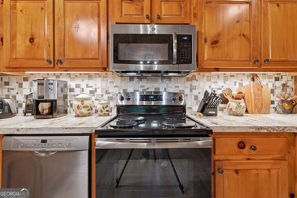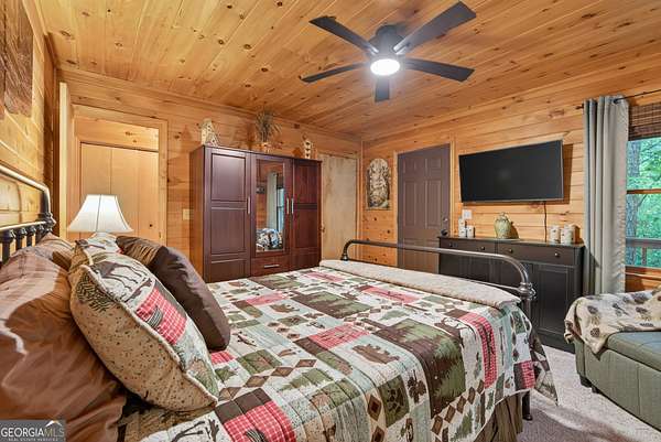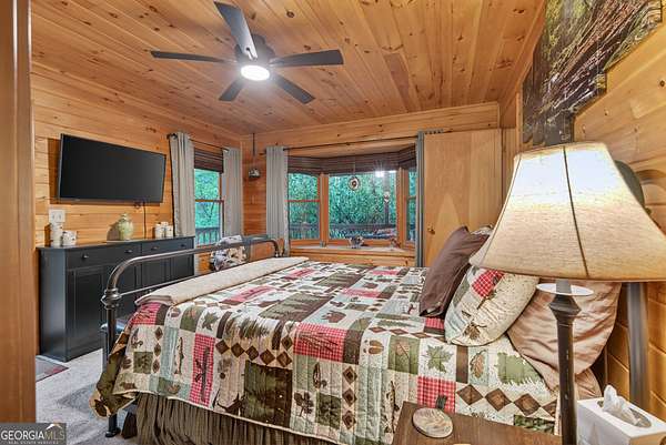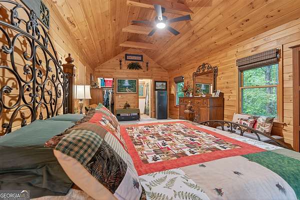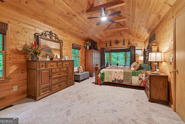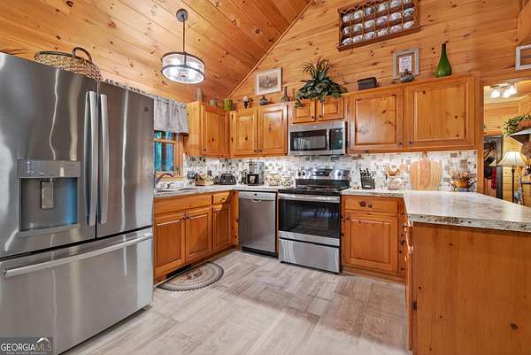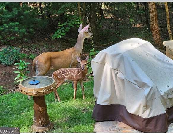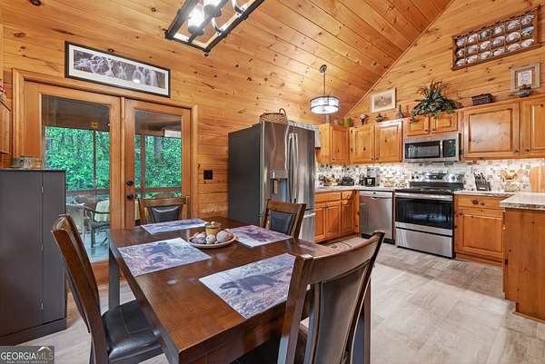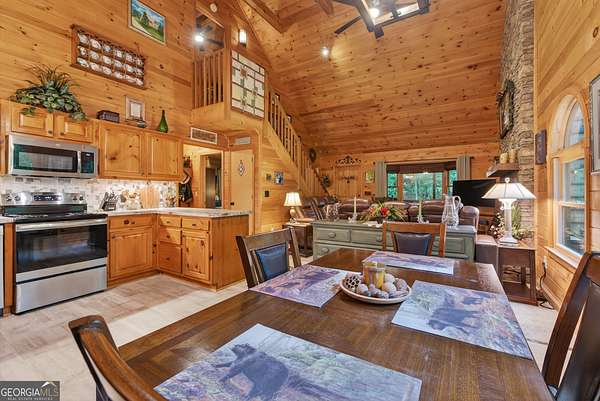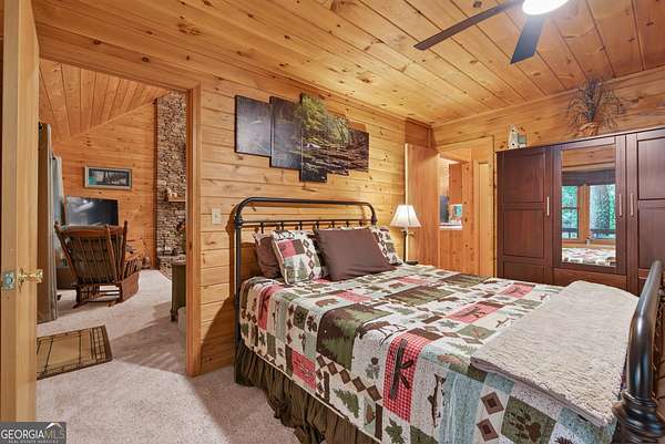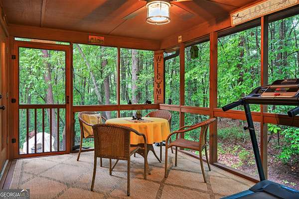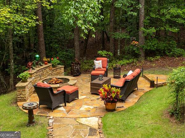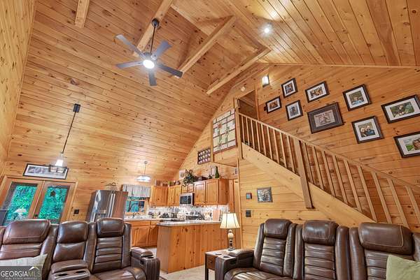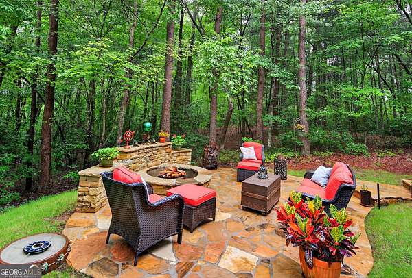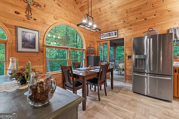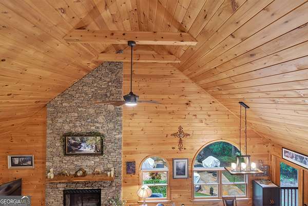 Nestled in the heart of Sautee Nacoochee, this picturesque 2-acre cedar cabin features cathedral ceilings and custom interior finishes, all surrounded by wooded tranquility. It's a quiet retreat just minutes from the charm of Helen and the beauty of the Chattahoochee National Forest. Upon entry, you'll immediately notice the floor-to-ceiling stacked stone fireplace, pristine tongue-and-groove paneling, and a newly renovated kitchen. The home has been thoughtfully updated-meticulously cared for by its owners, and it shows! With 2 bedrooms and 2 full bathrooms-one on each level-the layout offers comfort and privacy. The upstairs master suite feels like your own luxurious treehouse, perched among the treetops. Additional features include a screened porch (already wired for hot tub) for enjoying crisp mountain air and a generous wraparound deck that spans the entire front of the home. It's adorned with stately exterior fans and a custom firewood box, ideal for hosting or unwinding. Step outside and you'll find a serene woodland retreat, perfectly designed for comfort and connection. A beautifully crafted stone patio anchors the space, surrounded by lush forest greenery that provides natural privacy. A central stone fire pit invites cozy evenings under the stars, while a low stone wall adds rustic charm. A graceful stone pathway leads to the patio, beckoning guests to explore and unwind. The entire outdoor setting feels like an extension of the forest-peaceful, inviting, and thoughtfully arranged for both relaxation and entertaining. Since 2018, the owners have taken exceptional care of this home. Upgrades include a new roof, HVAC system, fireplace cap and vent pipe, lighting, flooring, blinds, a whole-house water filter, water pressure tank, appliances, counters, backsplash, fiber internet, and more. The seasonal mountain views are stunning, and the expansive outdoor living space adds even more appeal. All of this is conveniently located near local wineries, hiking trails, and river adventures-your gateway to mountain living.