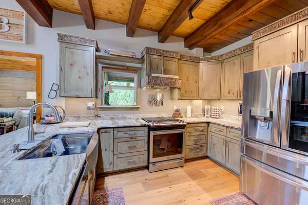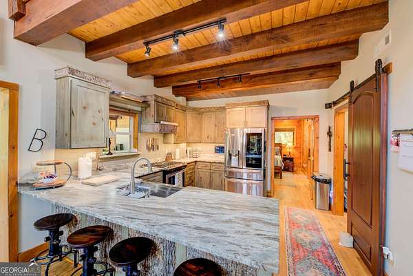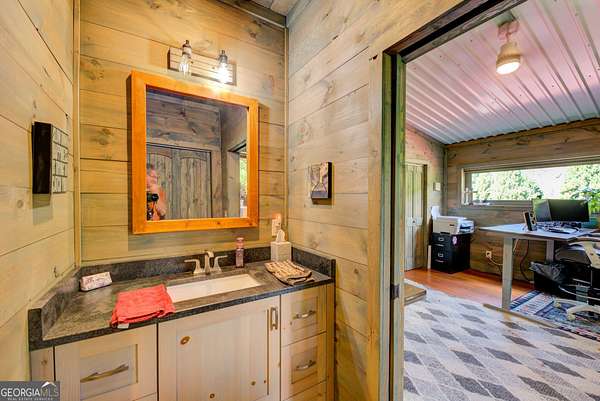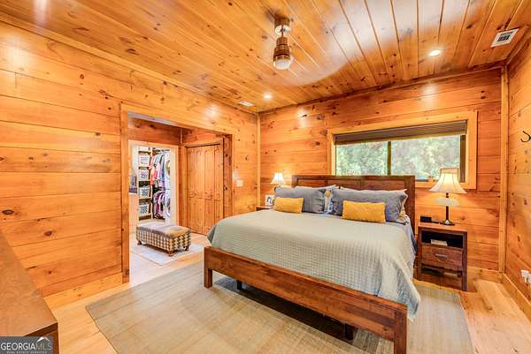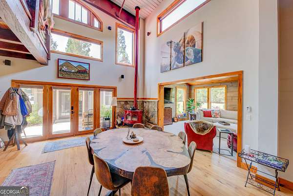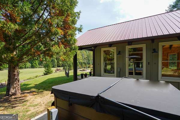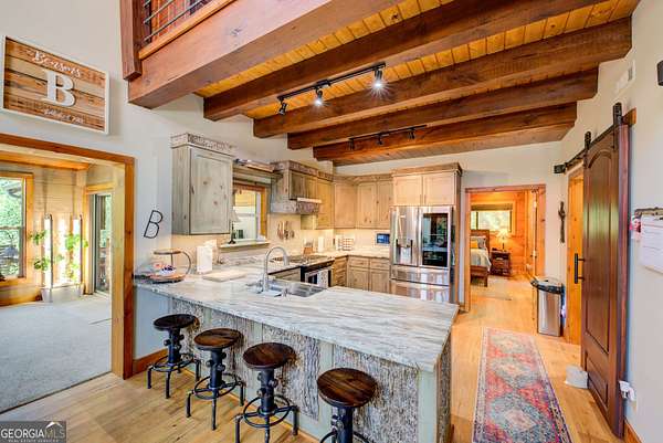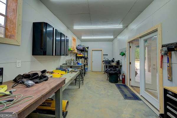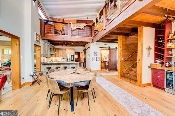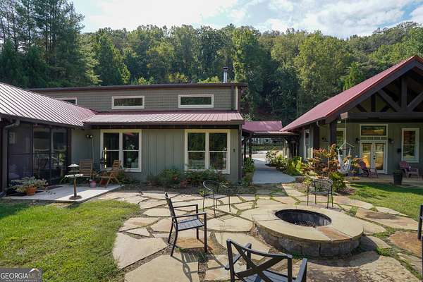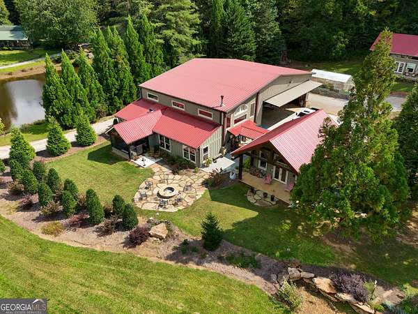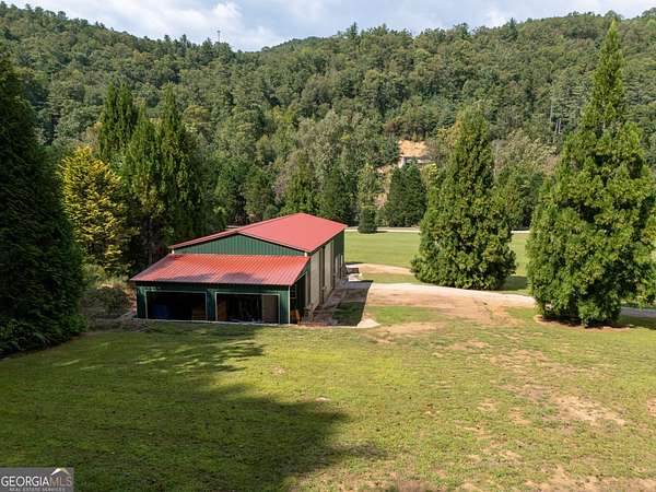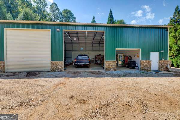 Your Private Fly-in Mountain Sanctuary in Rabun County Nestled within the stunning landscape of Rabun County, Georgia, this is more than just a home; it's a gateway to an unparalleled mountain lifestyle. This one-of-a-kind hanger home has 7+- acres and is situated on a private 3,000-foot airstrip (Big Creek Flying Ranch GA18), giving you direct access to this mountain paradise. This barndominium (hangar home) is a testament to luxurious rustic living. The open-concept interior features a Vermont wood-burning stove, wine bar, soaring ceilings, and remote-controlled blinds, beautiful floors, and timber beams work throughout. The main floor is comprised of the great room, with a custom kitchen and walk-in pantry, as well as a 1/2 bath, and enclosed "3-season" sunporch leading to the oversized, screened-in porch with a fully equipped outdoor kitchen (Stainless, Charbroil equipment). (has the pastic "Porch Living" windows that slide with the screens.) Step out to the stone patio, the perfect spot to take in the mountain air and gather around the stone fire pit for stories and s'mores. You'll be impressed by the large master bedroom and bath with clubhouse-lockeroom style dressing area, walk-in closet and laundry. Look up and see the massive wood beams supporting the upper-level loft study and den space that transitions to the 2 spacious bedrooms with dual dressing areas and shared shower (Jack and Jill). With three bedrooms and three and a half baths, there's plenty of space for family and guests. The integrated hangar space is expansive with 44-foot folding door and a 14-foot roll-up door with ample space to accommodate two small planes or your camper and other large toys. This space includes the workout room (conditioned space) with rubber floor tiles, a 2nd laundry and space for hobbies and a swim spa (swim spa is not included). A beautiful breezeway connects the home to a two-car timberframe carport (walled on 3 sides), and a huge concrete parking pad provides plenty of room for vehicles. Rest easy knowing there's a whole house Generac generator on stand by. For your visitors, a separate, timberframe guest cottage with kitchenette, a loft bedroom, full bath, and covered porch provides ultimate privacy and comfort. Outside, you'll discover a fully automated greenhouse, a garden shed, a garden area, and a cascading river stone waterfall all set in a gorgeous and serene mountain setting just minutes from Clayton, yet seemingly a world away from it all. Here in Rabun County, approximately 62% of the county is protected National Forest, and another 18% is composed of the state parks and the magnificent Georgia Power Lakes: Rabun, Burton, and Seed. For outdoor enthusiasts, adventure awaits just minutes away. Enjoy whitewater rafting, miles of hiking trails including close proximity to the Appalachian and Bartram trails, and three state parks, including the breathtaking Tallulah Gorge. The nearby downtown of Clayton is well-known for its charming dining and shops, serving as a destination for mountain recreation and relaxation. Detailed feature sheet available.