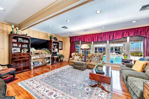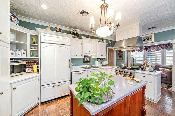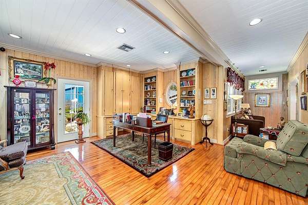 Graceful, Timeless, Classic are just a few words that describes this Lovely home. Well built and impeccably kept can be added to the description, This spacious home offer many custom features which include metal Bahama & accordion hurricane shutters, 50 kw natural gas generator, landscaping & red wood construction covered with aluminum siding. Beautifully decorated with Custom gas fireplace, built in bookcases, beautiful wood oak floors, cypress walls, crown molding, custom kitchen cabinetry, Corian cabinet tops, master suite with large closets and dressing area & separate upstairs sitting area for guest or children adjacent to the 2 spare bedrooms. Pool area is so welcoming and ideal for entertaining or family fun. There is an open cabana equipped with full kitchen which includes a commercial stove, ice machine & gas BBQ pit. Garage has been converted into an office and workout room with full bath. This established residence is being offer to you at appraisal value! If you are a business owner, available for sale is a large warehouse and office in the back of this amazing home. (Square footage is not warranted by Seller and is to be verified by buyer)