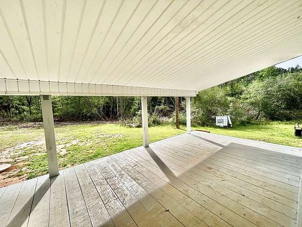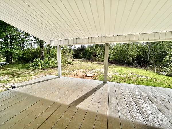 This home is just the right size on 3 acres with total privacy and wooded land surrounding. This home has a semi open floor plan, 2 bedrooms to the right with a full bath in the hall and master suite to the left with walk in closet and a full bath with jetted tub that exits into the utility room that also exits to the outside. The dining area has glass doors that open onto a covered deck perfect for grilling and relaxation. The kitchen is quite large with fresh white cabinets surrounding to the eat in bar. The family room is very cozy with the fireplace in the middle of the room that backs up to the kitchen. The roof, central unit and appliances are all under 5 years old. Priced to sell fast so bring your buyers quickly to see this home on 3 acres. Additional acres for sale if needed.