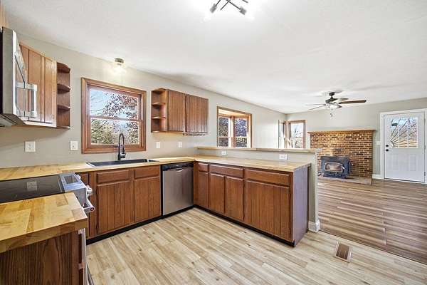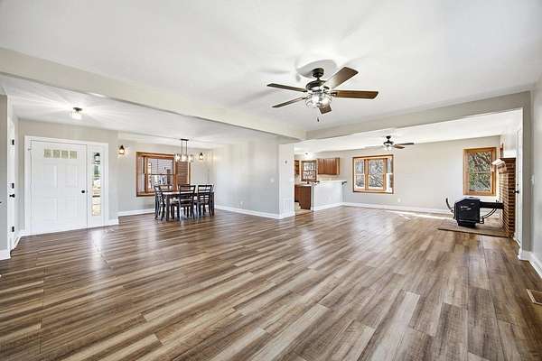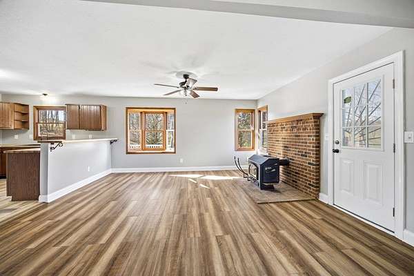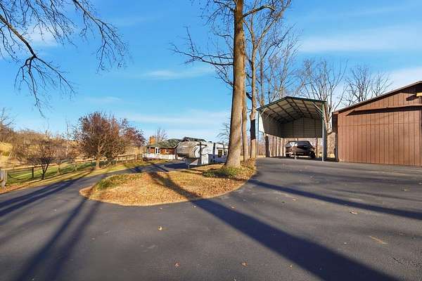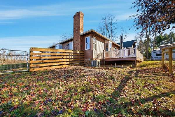 New Year, New Goals-starting with the right home. From its peaceful setting to its thoughtful layout, this home is designed to make everyday living feel just right. Situated on 5-acres it combines one-level living with spacious acreage, outbuildings galore, & a workshop that any hobbyist will appreciate. The heart of the home features a bright dining/family room with bay windows framing tranquil views. With 3 bedrooms and 2A 1/2 baths, this home is perfect for comfortable living, entertaining, or even multigenerational use with the full unfinished walk-out basement offering generous expansion potential. Step outside and enjoy the outdoors with a new and extended deck, ideal for relaxing or hosting gatherings, and a large fenced-in area (and look at that fence!). Storage will never be a challenge w/ a detached 2-car garage/workshop, a large metal barn with dual lean-to sheds, carport sized for your camper or RV, multiple garden/mower storage sheds. You'll love the circular paved driveway with two access points for convenience & style. Solar panels & a 2019 roof offer energy efficiency and long-term peace of mind. Come see why this exceptional property is ready to be your next chapter. See upgrades list in documents.