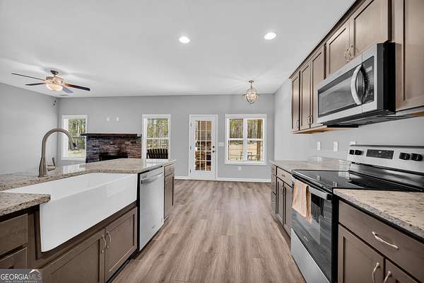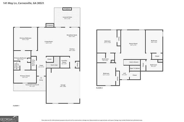 There's a certain kind of quiet you don't realize you've been missing... until you pull into 141 May Lane. Set on 5.57 fully fenced acres in peaceful Carnesville, this 4-bedroom, 3 1/2 bathroom home will make you want to slow down and unwind. Step inside and you'll find an immaculately maintained home that beckons you to relax in front of the wood-burning fireplace on those chilly winter days. Entertaining guests? The cold temperatures won't stop you from taking the party outside - a second wood-burning fireplace is located on the covered patio just steps away from the kitchen and living room. A portion of the backyard has already been graded, giving you a head start to add a storage building, a shop, or your own backyard oasis. And with the entire property fenced, you have the freedom to bring your animals, your hobbies, and your plans with you. From the front porch, the view feels endless and evening sunsets will become a part of your daily routine. The primary suite is located on the main level, with a large walk-in closet and a spacious bathroom that includes dual vanities and a sizeable tiled shower. Also located on the main level is a half bath nearby for guests. Upstairs, you'll find three large bedrooms, two full bathrooms, and a versatile open bonus area-perfect for a home office, playroom, media space, or whatever best fits your lifestyle. If you've been waiting for a place that gives you space, privacy, and a home that actually feels good to come back to at the end of the day, this is it. Come see it in person-you'll understand the moment you pull in.