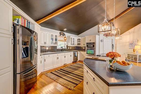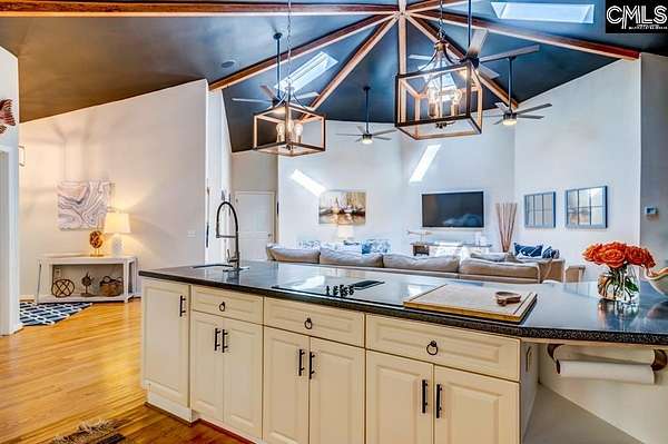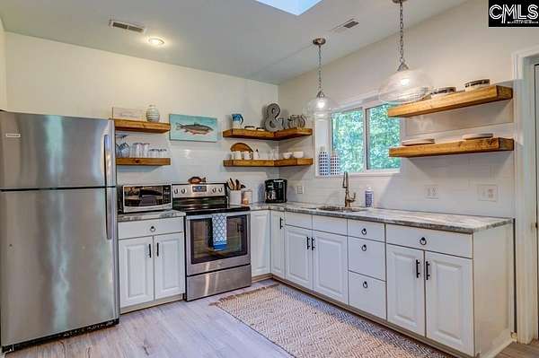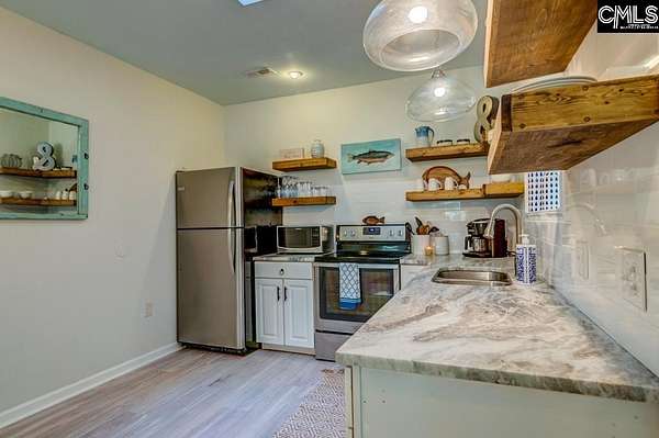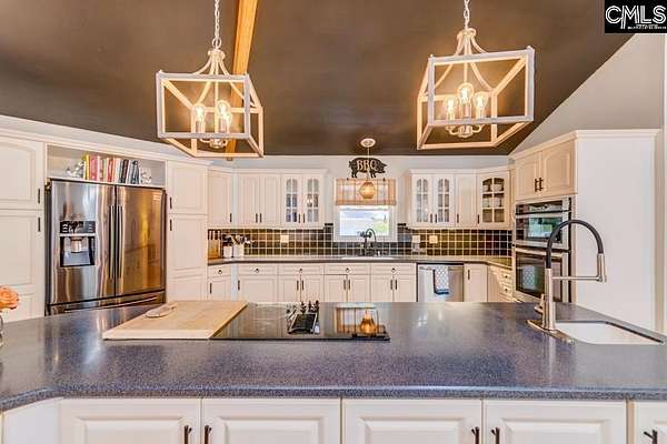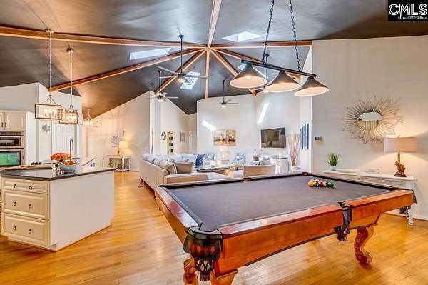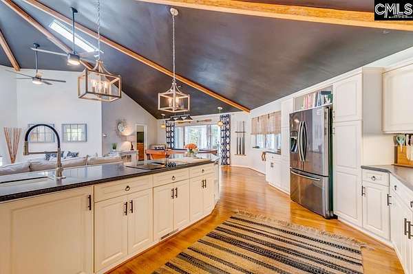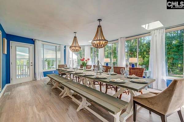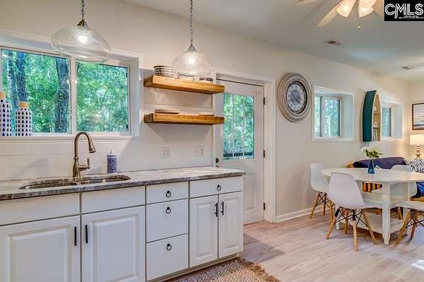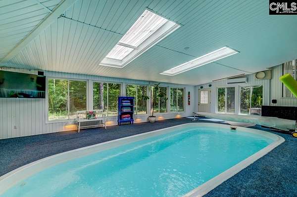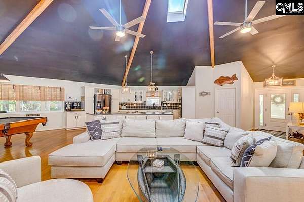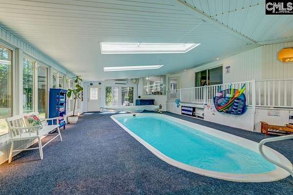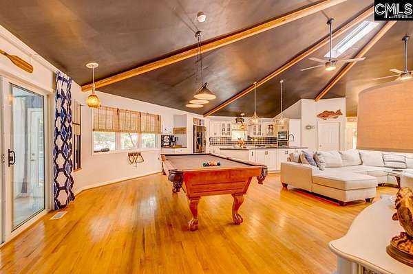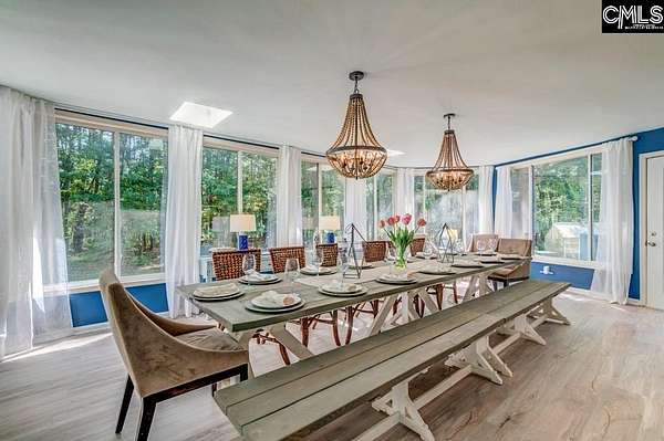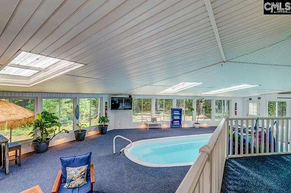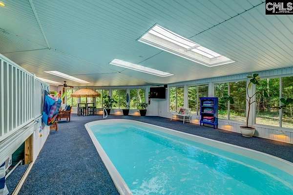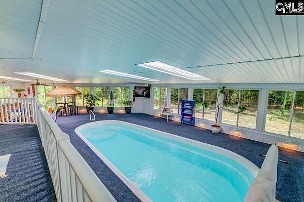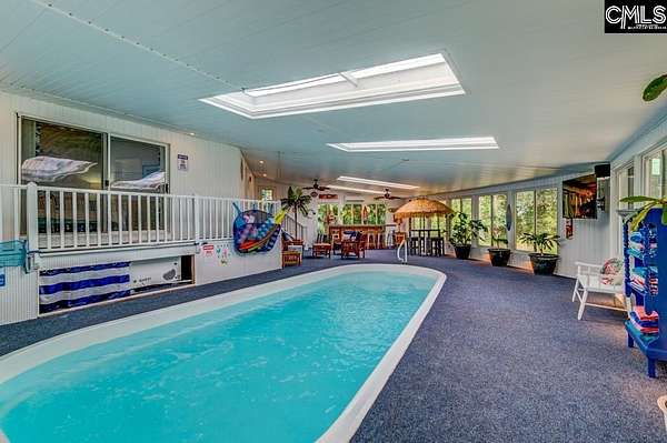 Welcome to your private lakefront compound on 2.5 secluded acres on Lake Marion with a heated indoor pool! This one-of-a-kind property features two homes and has a proven short-term rental history. The main octagon-style home offers 3 bedrooms, 2 baths, and a spacious living and dining room--all with new flooring in the bedrooms and dining area. Many modern updates throughout the home, kitchen and bathrooms. The guest house includes 1 bedroom, 1 bath, a full kitchen, dining space, and living area, plus new floors throughout. Enjoy lakefront living with a large stationary dock, 24' floating dock to tie your boat up and direct access to the big water. Recent updates to both houses include a new roofs, new AC units, and new water heaters. Property highlights also include an indoor heated pool with Tiki bar, a beautiful firepit, large garage with a bathroom and AC, a two-car carport, a large greenhouse with a water hose inside, and a long horseshoe limestone driveway. A rare find--private, rural, and perfect for Lake Life or rental income! Disclaimer: CMLS has not reviewed and, therefore, does not endorse vendors who may appear in listings.