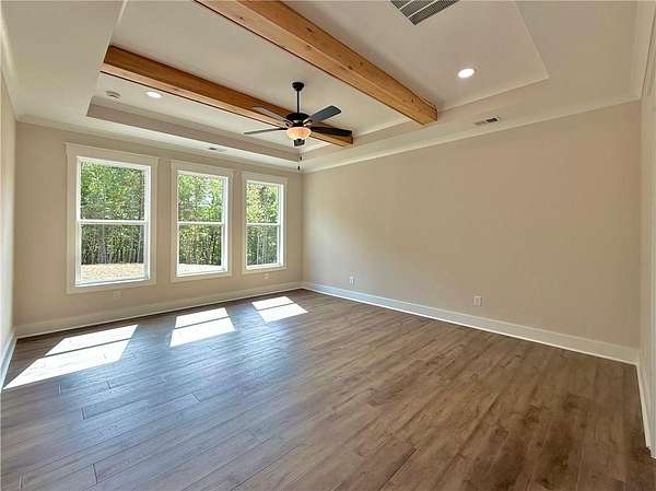 Discover refined living in The Summit, an exclusive gated community in Rydal, Georgia. 4.50% Builder Promo Rate with LGE Community Credit Union (LGE T&C apply) This new construction luxury home offers five bedrooms, four bathrooms, and a three-car garage, and sits on a beautifully landscaped two-acre estate lot with mountain views. As you enter through the private foyer, you're welcomed into a spacious great room featuring a custom wood-burning fireplace with a convenient gas starter, a cedar mantel, and smooth cedar coffered ceilings. The open layout provides seamless sightlines into the gourmet kitchen, designed to impress the chef in the family. The kitchen is equipped with premium ZLINE stainless appliances, quartz countertops, a large center island for additional workspace, and upgraded soft-close, dovetailed cabinetry, walk-in pantry with wood shelving and under-cabinet lighting accents. The open dining area easily accommodates 12 or more guests and features 12-foot sliding glass doors that lead to a vaulted covered patio, great for both formal entertaining and summer cookouts. The private primary suite on the main level is highlighted by rich hardwood flooring, a tray ceiling, and abundant natural light. The spa-inspired ensuite bath includes dual vanities with quartz countertops, a frameless glass shower, a freestanding soaking tub, and his-and-hers walk-in closet with direct access to the laundry room. The main floor also offers a generously sized guest bedroom, a full bath, and a mudroom with built-in storage. Upstairs, you'll find three additional bedrooms and two full bathrooms, on of which is a large, finished bonus room that's ideal for a media space, teen suite, or home office. Outside, the two-acre lot offers plenty of room for a future swimming pool or detached garage, surrounded by peaceful countryside and mountain views. Despite its serene setting, this home is just eight minutes from I-75 and only twenty minutes from hospitals, shopping, fine dining, and entertainment. Take advantage of the current 4.50% promotional rate incentive with LGE Community Credit Union (LGE terms and conditions apply). Don't miss this opportunity to own your dream home in The Summit and still have time to personalize the finishes to make it uniquely yours. Photos may show different finishes on the home and are for illustration purposes only.