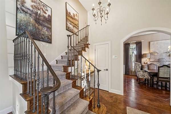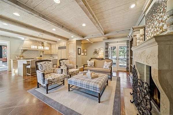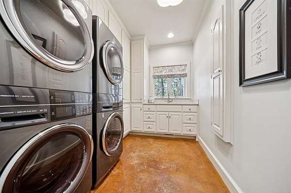 Experience sophisticated, fully furnished urban living on five beautifully landscaped acres. This custom-built home offers four bedrooms, three full and two half baths, and a spacious living area with a 20-foot ceiling and an impressive fireplace. The gourmet kitchen and gathering room feature a fireplace, a Sub-Zero refrigerator, a deluxe six-burner gas range, granite countertops, a center island, pull-out drawers, and a pantry. Enjoy elegant formal dining with a butler's serving area and dishwasher. Recent updates include new paint, wallpaper, drapes, window treatments, toilets, faucets, and exterior shutters. The luxurious master suite consists of a large soaking tub, steam shower, and dressing area. Additional amenities include a game room/media room with equipment, an office, an upstairs playroom, a large utility room with two stackable washer/dryers, a covered patio, a safe room, a water filtration system, a sprinkler system, Pella windows, copper guttering, and a floored attic. Come make this your new home.