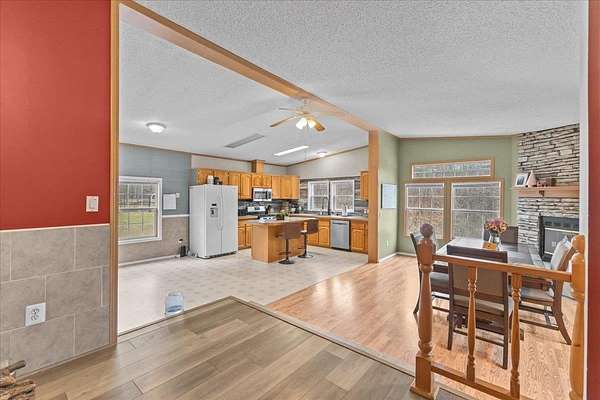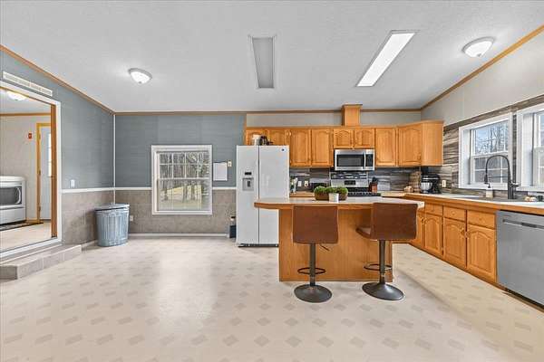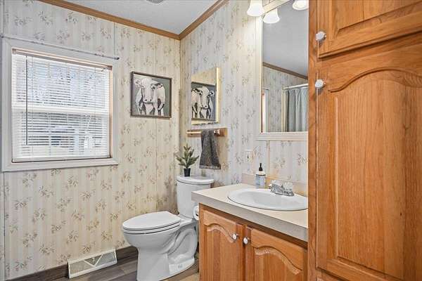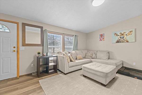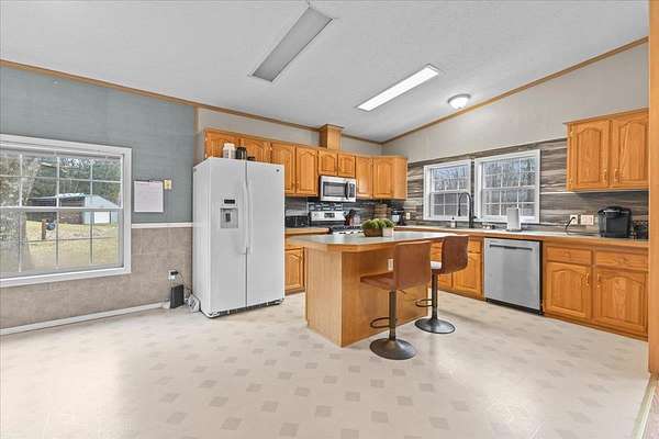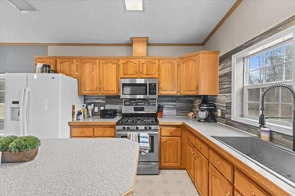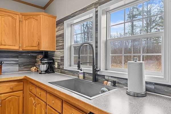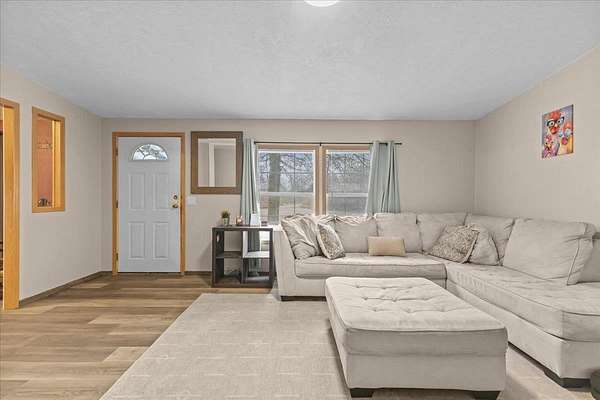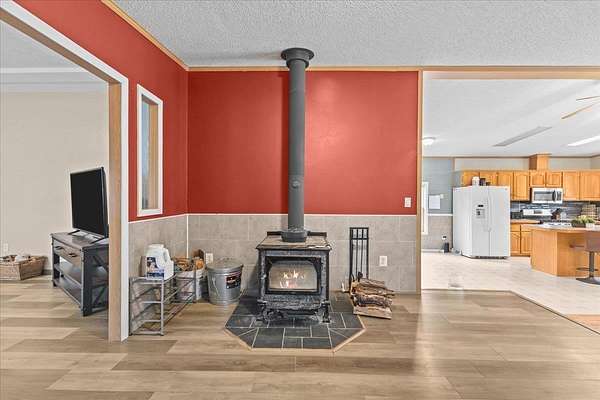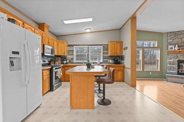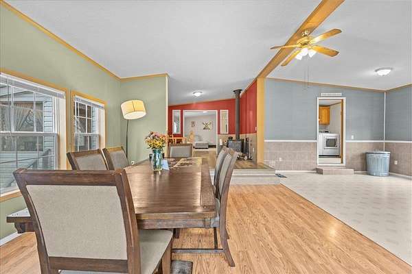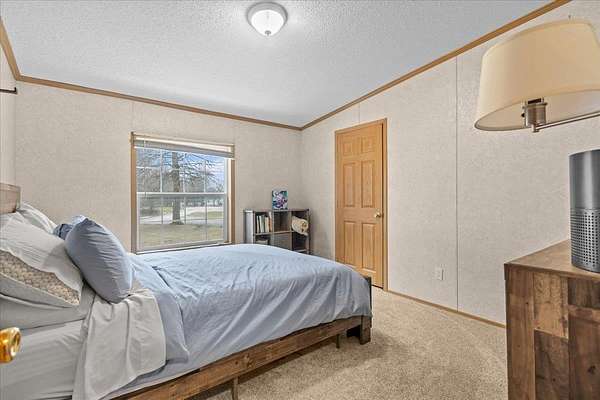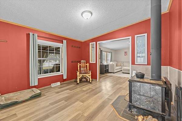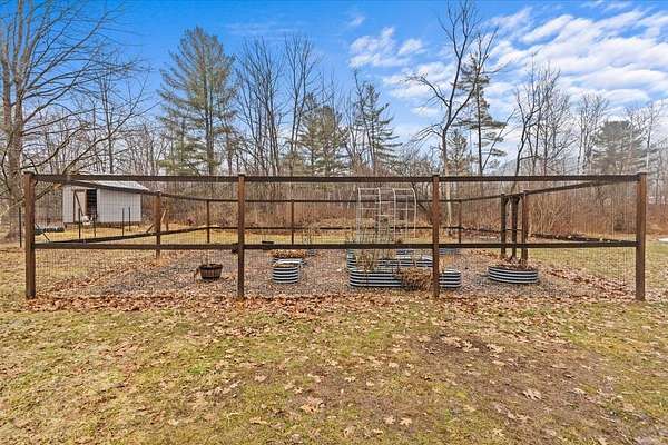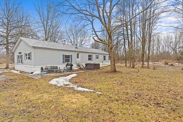 Enjoy privacy, room inside and out, and homesteading opportunities on seven peaceful acres in this 3-bedroom, 2-bath double-wide home, priced significantly below the current town assessment. Bright, open rooms with large windows create a welcoming feel throughout. The spacious kitchen offers abundant cabinets and counter space along with a new dishwasher and sink, and flows into an expansive dining room featuring a wood-burning fireplace with a beautiful stone hearth. Step up to a cozy sitting room with a woodstove that leads to the front door and covered porch, along with the sun-filled living room with vaulted ceilings. The primary bedroom suite includes two walk-in closets and a private bath with both a shower and soaking tub. Two additional bedrooms and a full hall bathroom complete the convenient single-level layout. The back entry includes a mudroom and utility room for added functionality. Outside, the seven-acre property features mature trees, open lawn areas, and ample space for gardens, animals, or hobby farming, with a garage/shed outbuilding, new chicken coop, and new goat house offering additional possibilities. Recent updates include interior painting, new carpeting, and improvements to the outbuildings. Find spacious living in a peaceful country setting with convenient access to nearby amenities and an easy commute to Burlington, Bristol, or Middlebury.