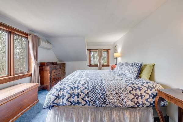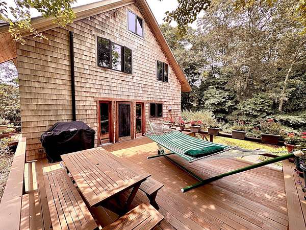Refined Craftsmanship and Modern Comforts Nestled on a serene 1.93-acre plot, this meticulously crafted 2-story shingle-style home offers an exquisite blend of traditional design and modern enhancements. Built by Peter Harwood in 1987, the residence showcases the fine touch of a master cabinetmaker with structural and decorative woodwork throughout. The interior features wide pine plank flooring on both levels, spruce ceilings and walls, and custom cherry wood kitchen cabinets. Eight-inch square cedar columns not only support the structure but add a distinct architectural element to the interiors. This home has been updated with state-of-the-art mechanical systems to ensure comfort and efficiency. In 2023, a new Lochinvar high-efficiency heater and boiler were installed in the full basement. The property also features modern Daikin Inverter AC/Heating units installed in two upstairs bedrooms and the living and primary bedrooms in 2019. Both upstairs bathrooms have been elegantly retiled in 2022, ensuring modern comforts blend seamlessly with classic charm. Additional updates include a new roof in 2018 and a robust Generac generator installed in 2012. Set below an agricultural reserve and overlooking vibrant wetlands, this home promises a tranquil retreat with a symphony of nature at your doorstep. The property bursts into life with seasonal blooms-from snowdrops and crocuses to lilacs and hydrangeas-creating a lush backdrop that attracts local wildlife, including hummingbirds and honeybees. Large windows and a back deck offer panoramic views of this natural paradise, where tree frogs, Mallard ducks, and occasional herons add to the pastoral charm. The landscape turns into a picturesque winter wonderland, completing the cycle of seasonal beauty that defines living in Water Mill. Discover the perfect blend of artisan craftsmanship and modern luxury at this Water Mill sanctuary, where every detail contributes to a life well-lived amidst the beauty of the Hamptons. Close to Watermill and Southampton Villages for dining and shopping's well as Hampton Jitney bus service to NYC and Long Island Railroad. Ocean and bay beaches nearby.